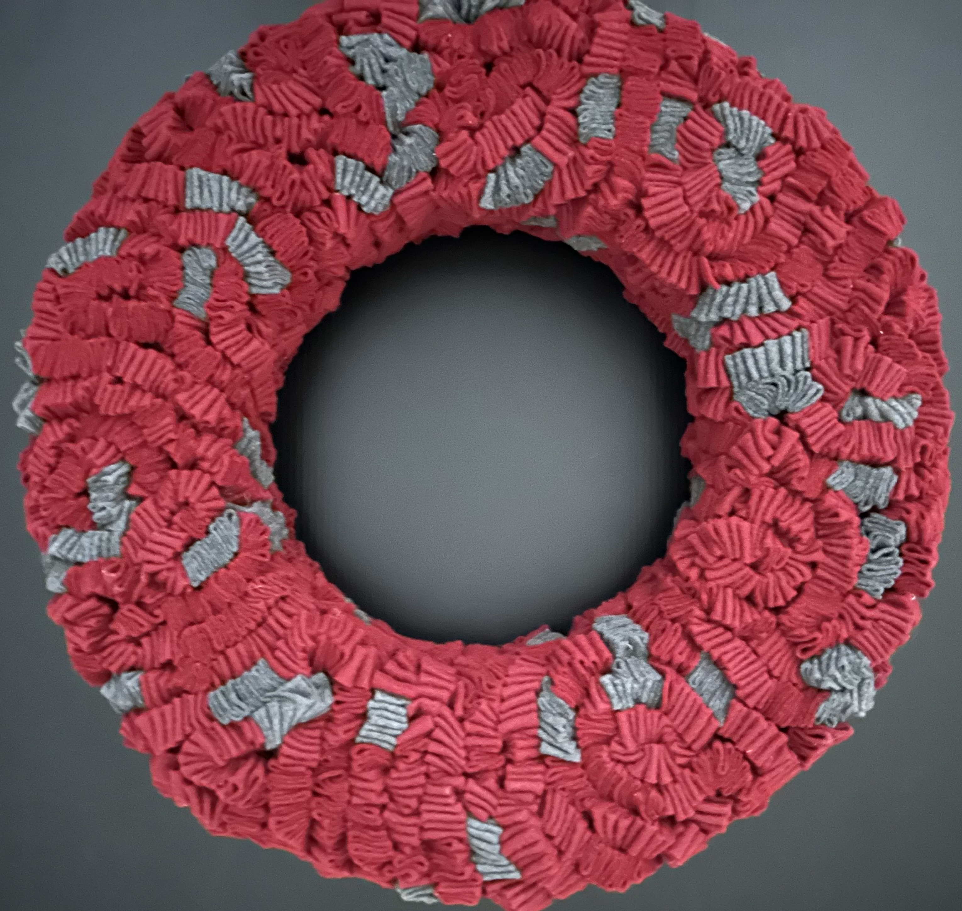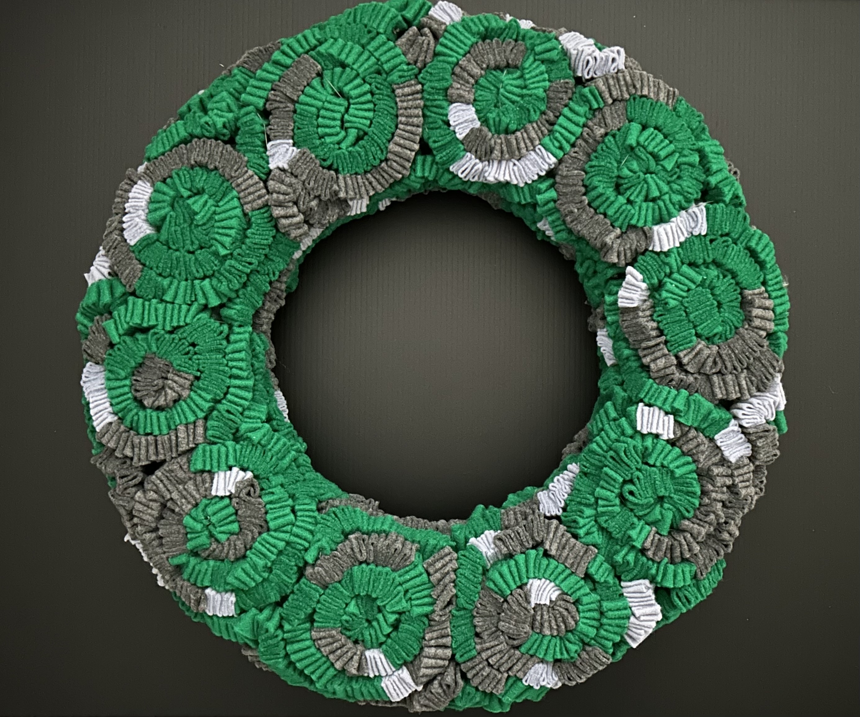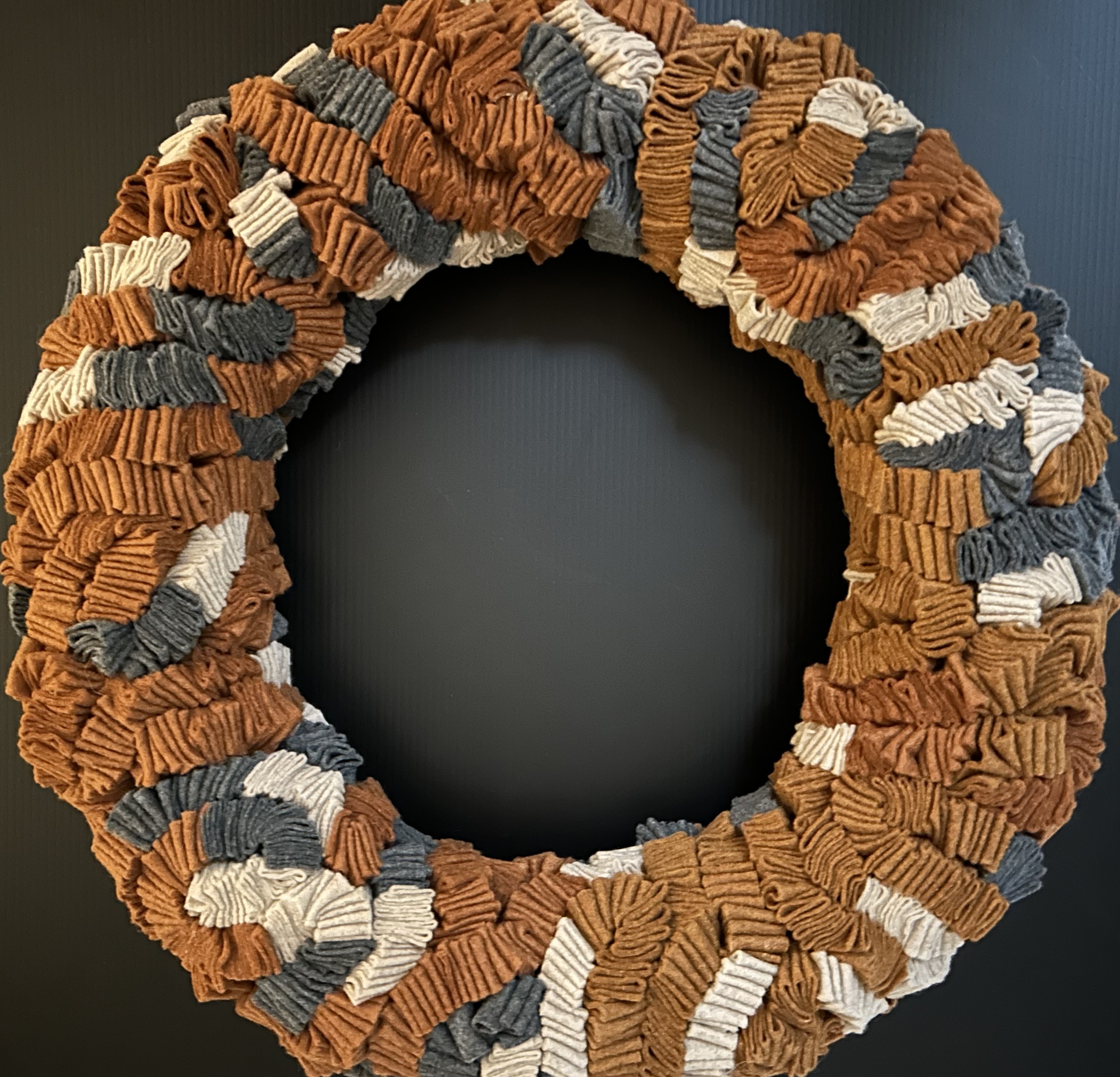 Felt on foam wreath, 17 x 17 x 3 inches, 2023