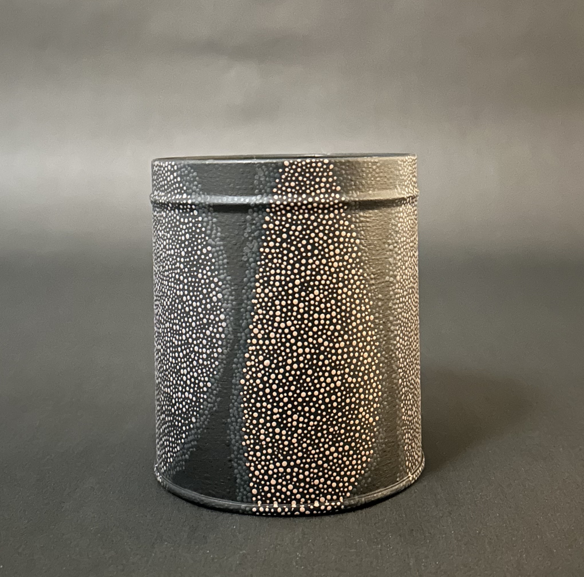 Acrylic on recycled metal can, 4 x 3.5 x 3.5 inches, 2023