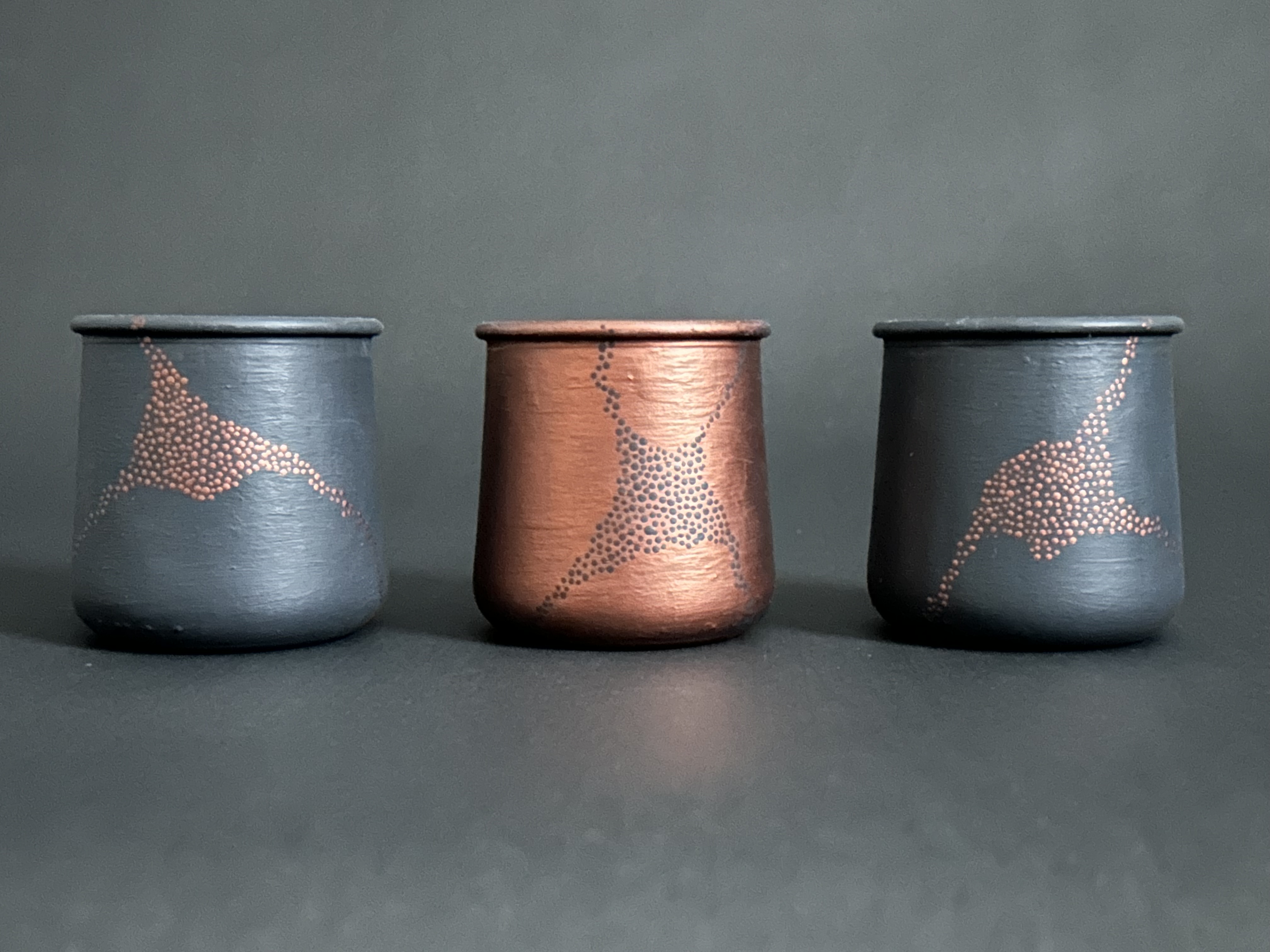 Acrylic on recycled glass jars, 2.75 x 2.5 x 2.5 inches, 2023