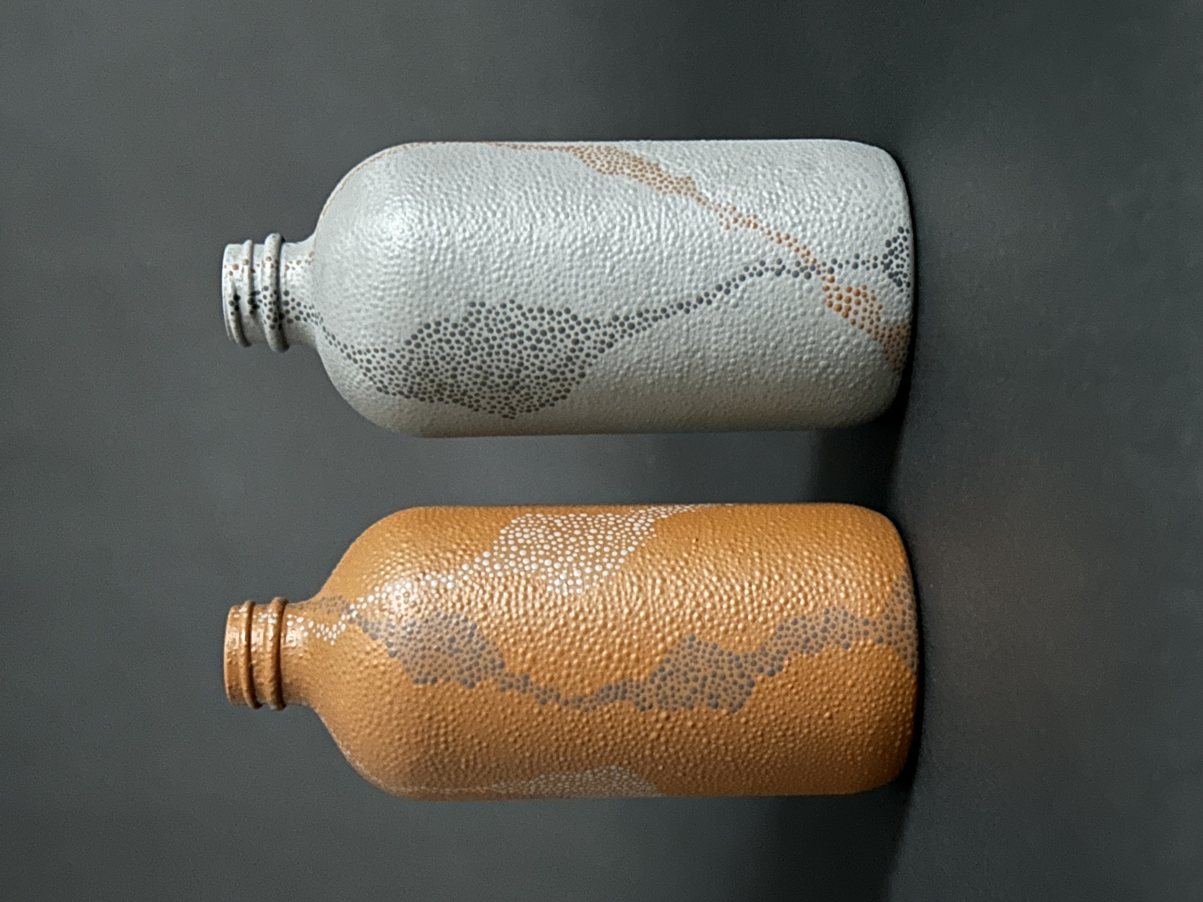 Acrylic on recycled glass bottles, 6.5 x 3 x 3, 2023
