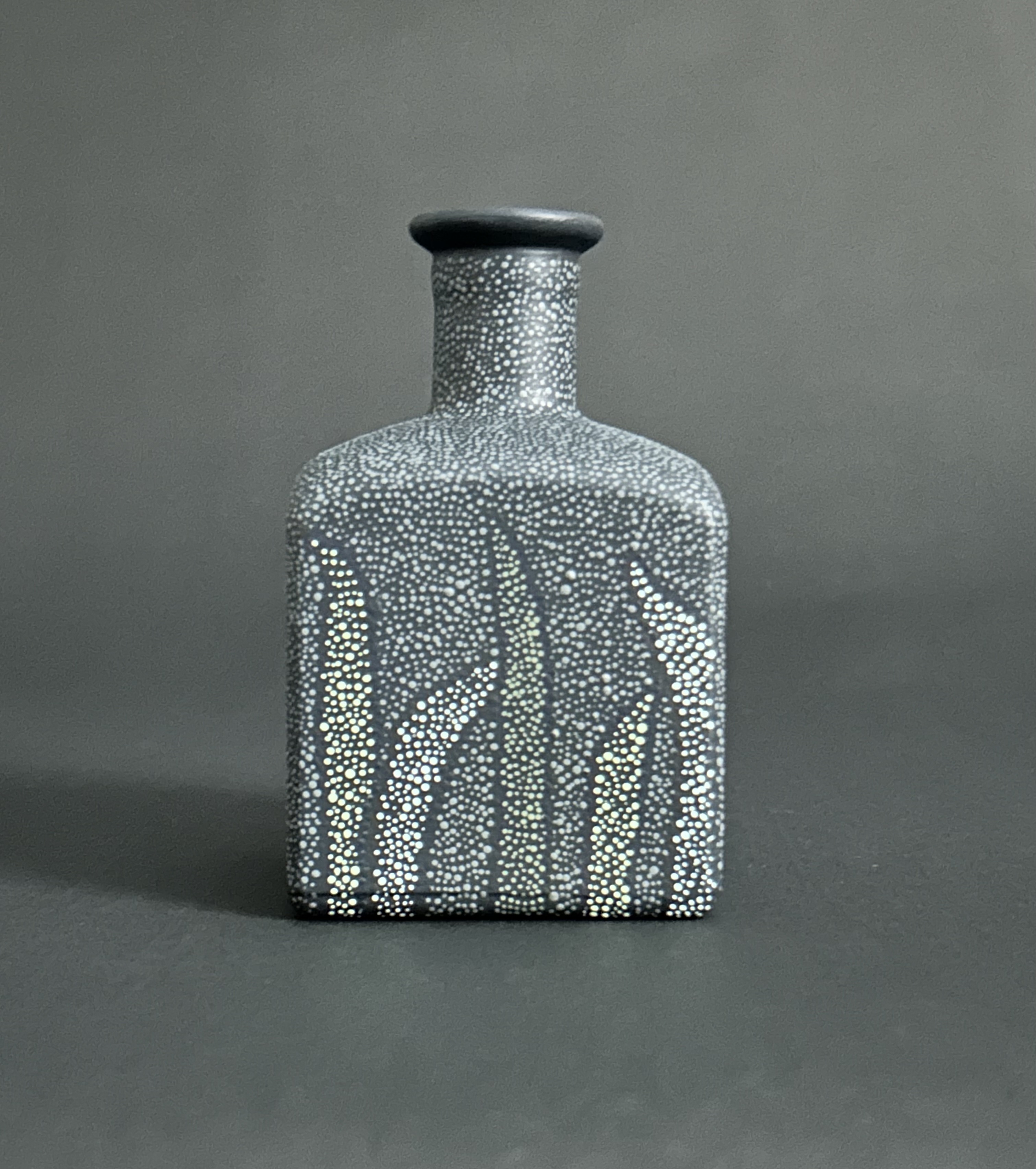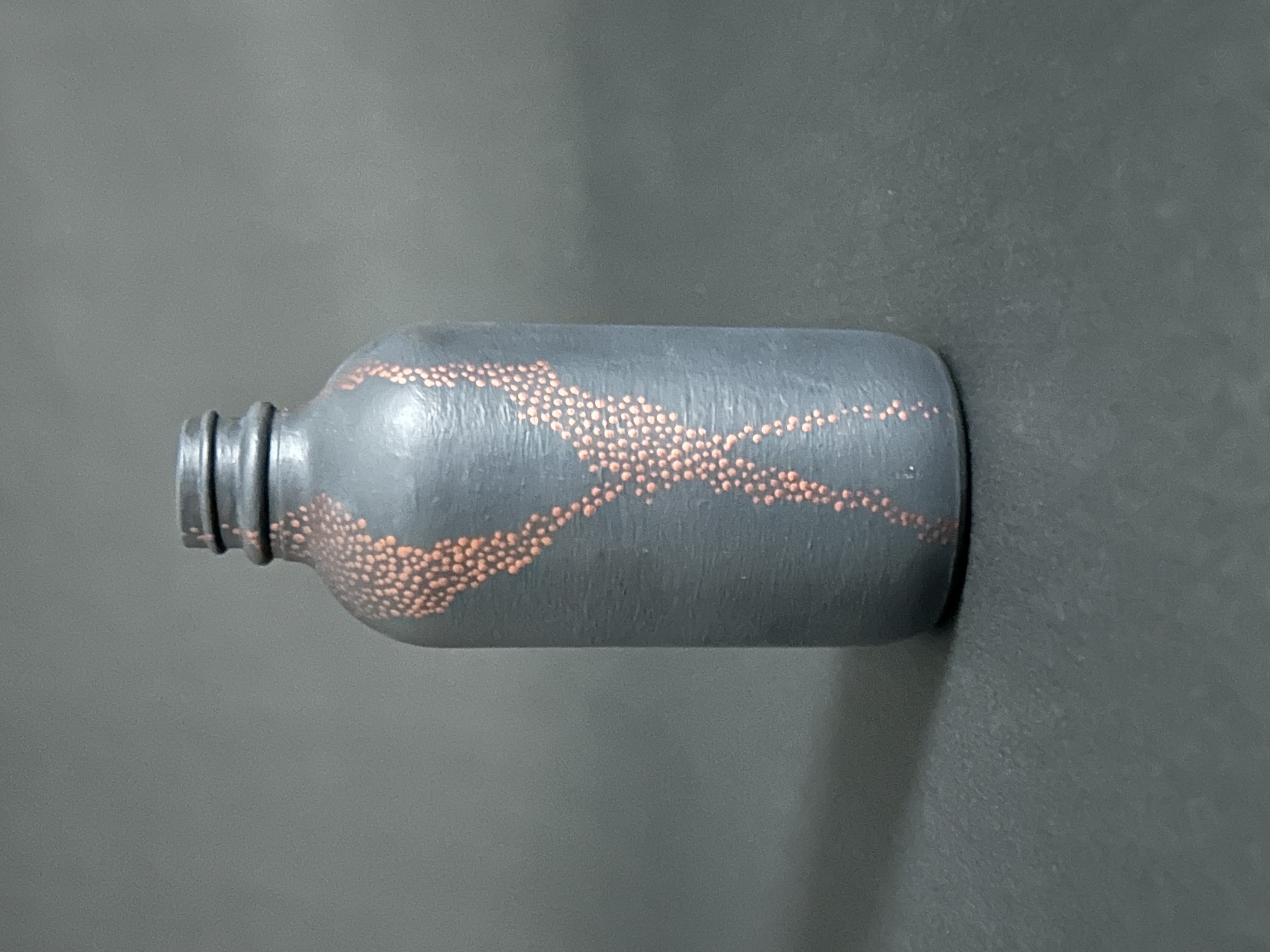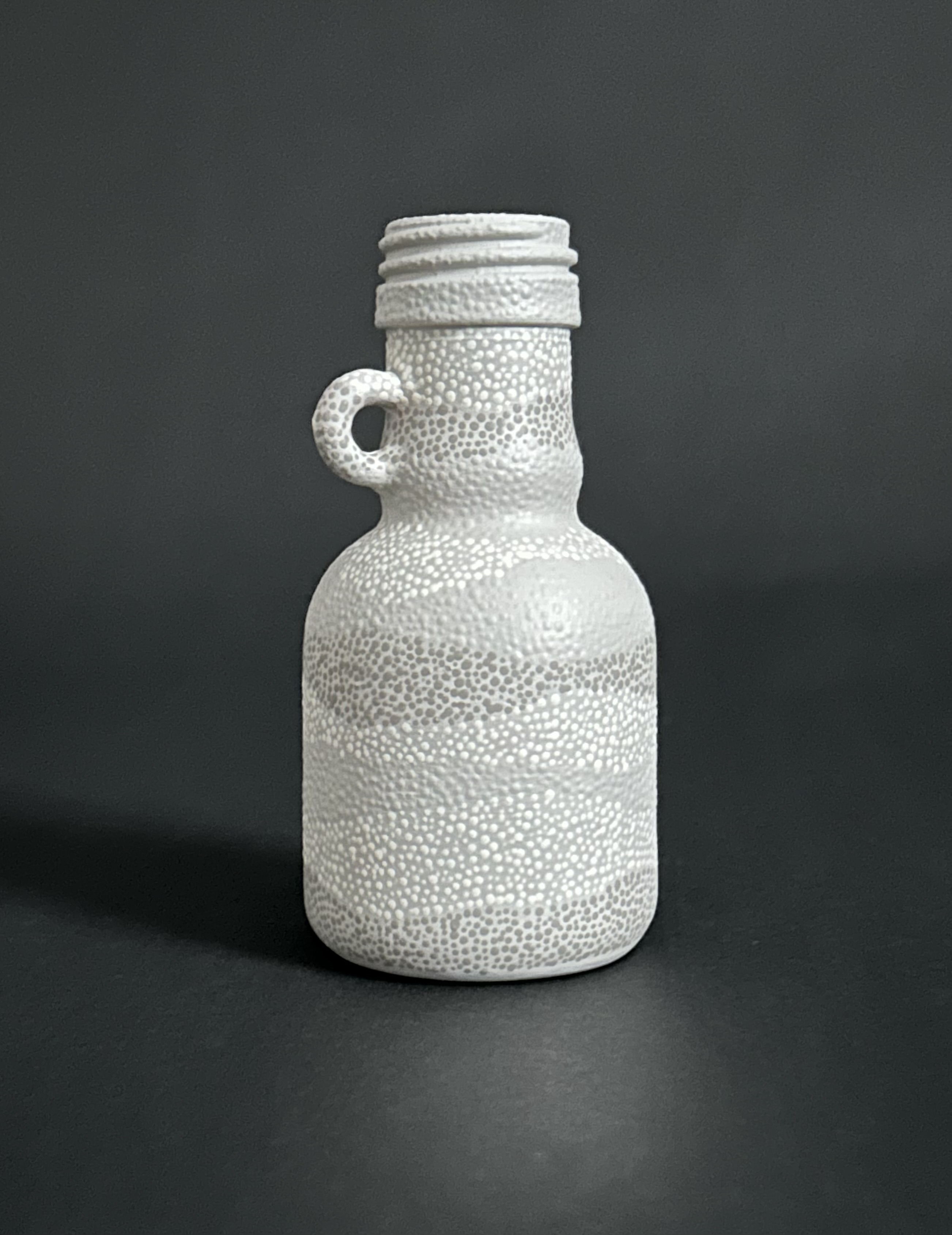 Acrylic on recycled glass bottle, 4.25 x 2.5 x 2.5 inches, 2023
