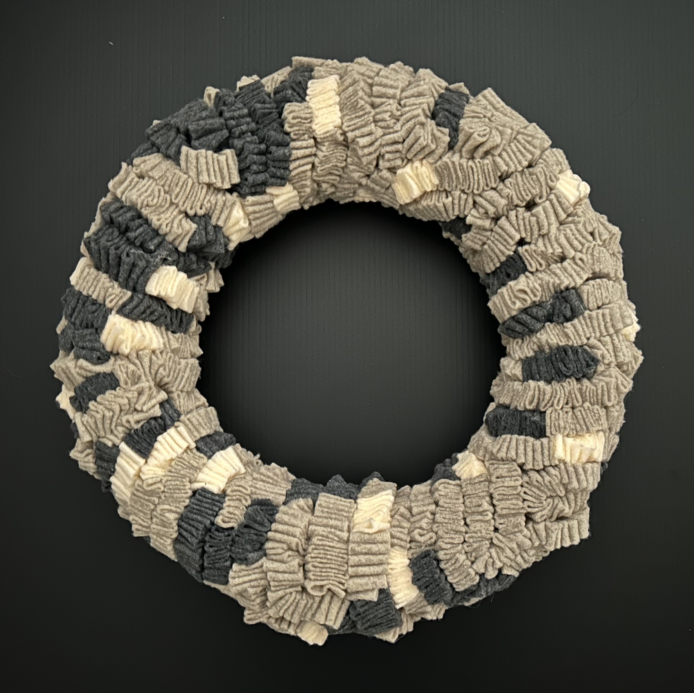 Felt on foam wreath, 18 x 18 x 3.5 inches, 2023