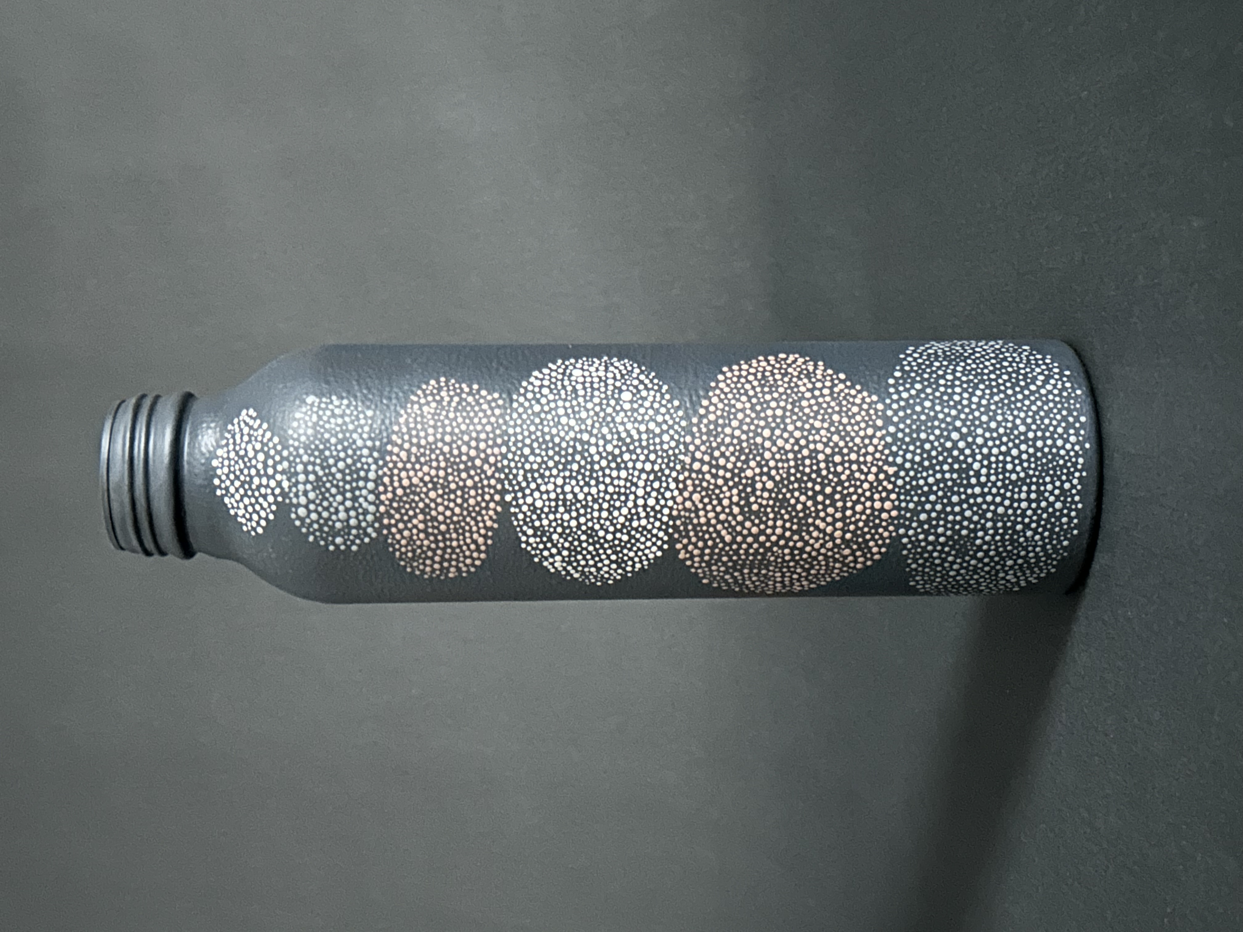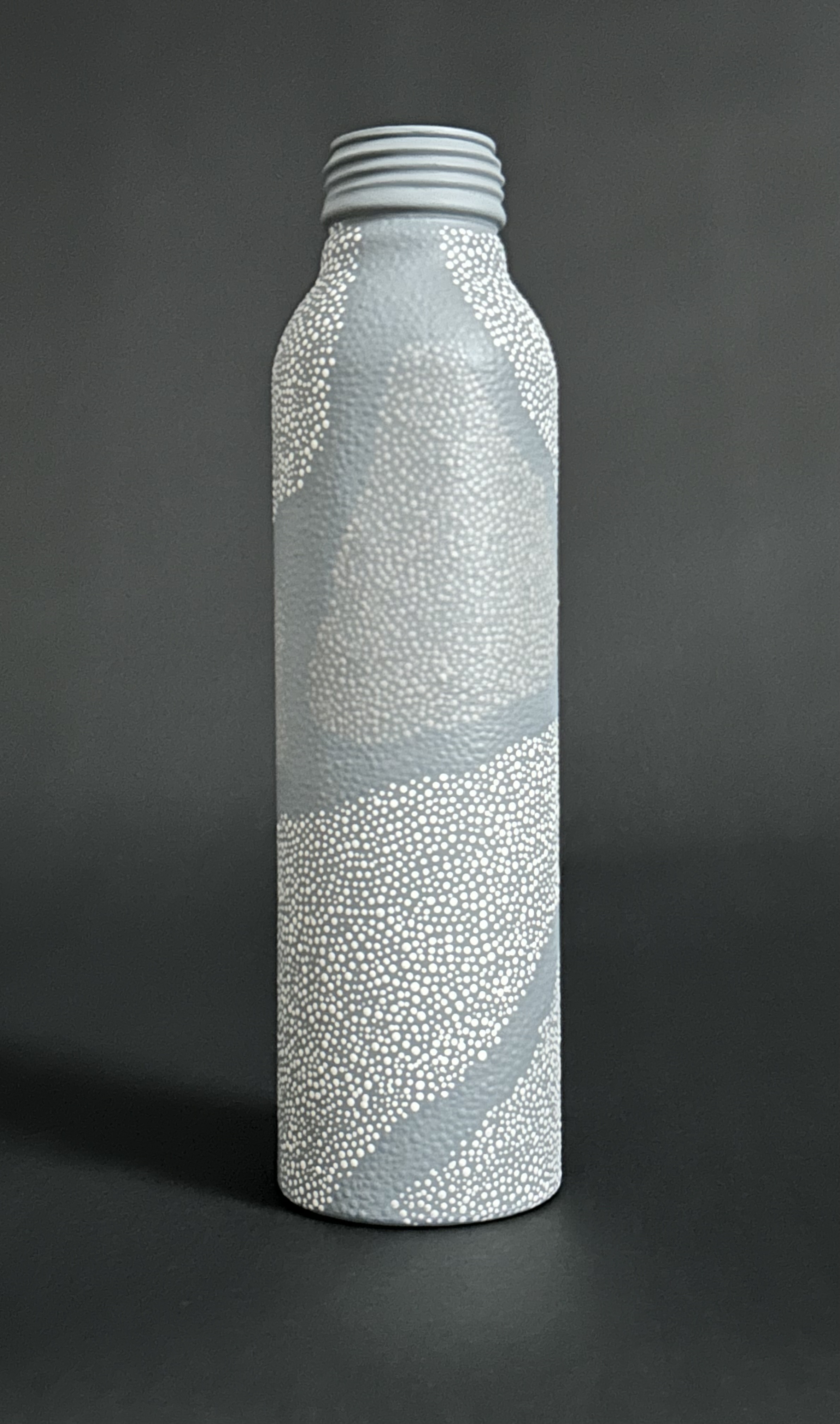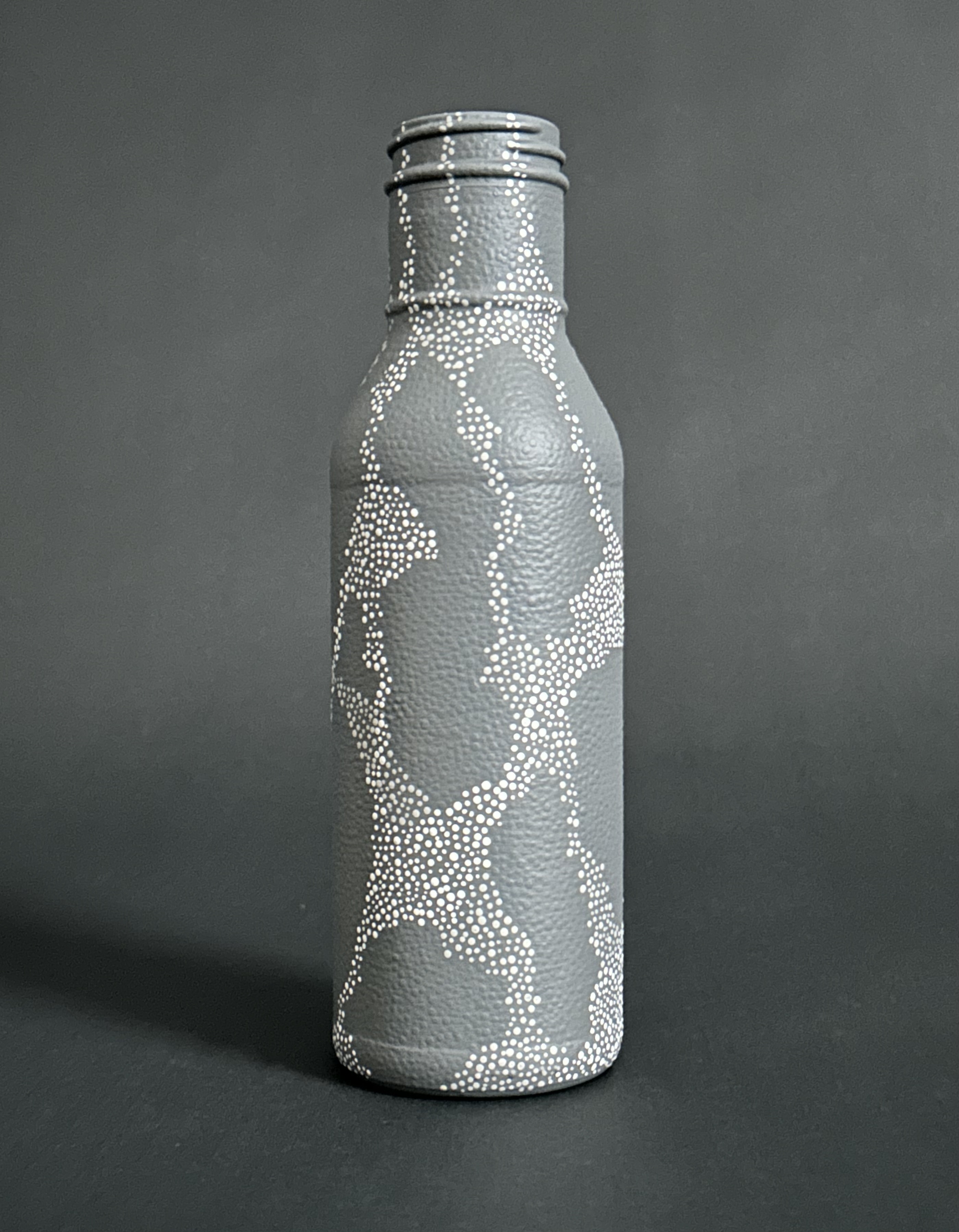 Acrylic on recycled metal bottle, 8.5 x 2.25 x 2.25 inches, 2023