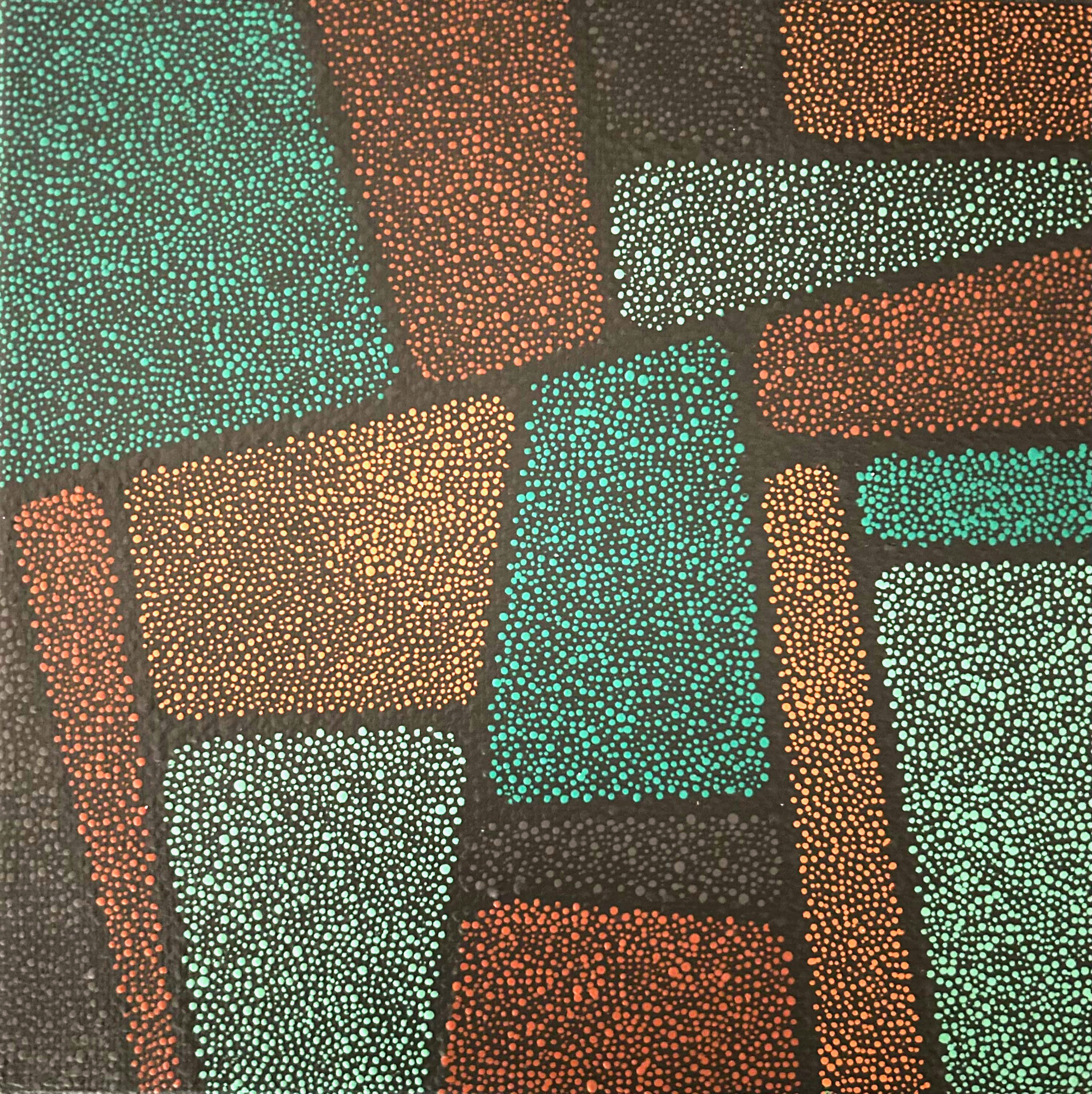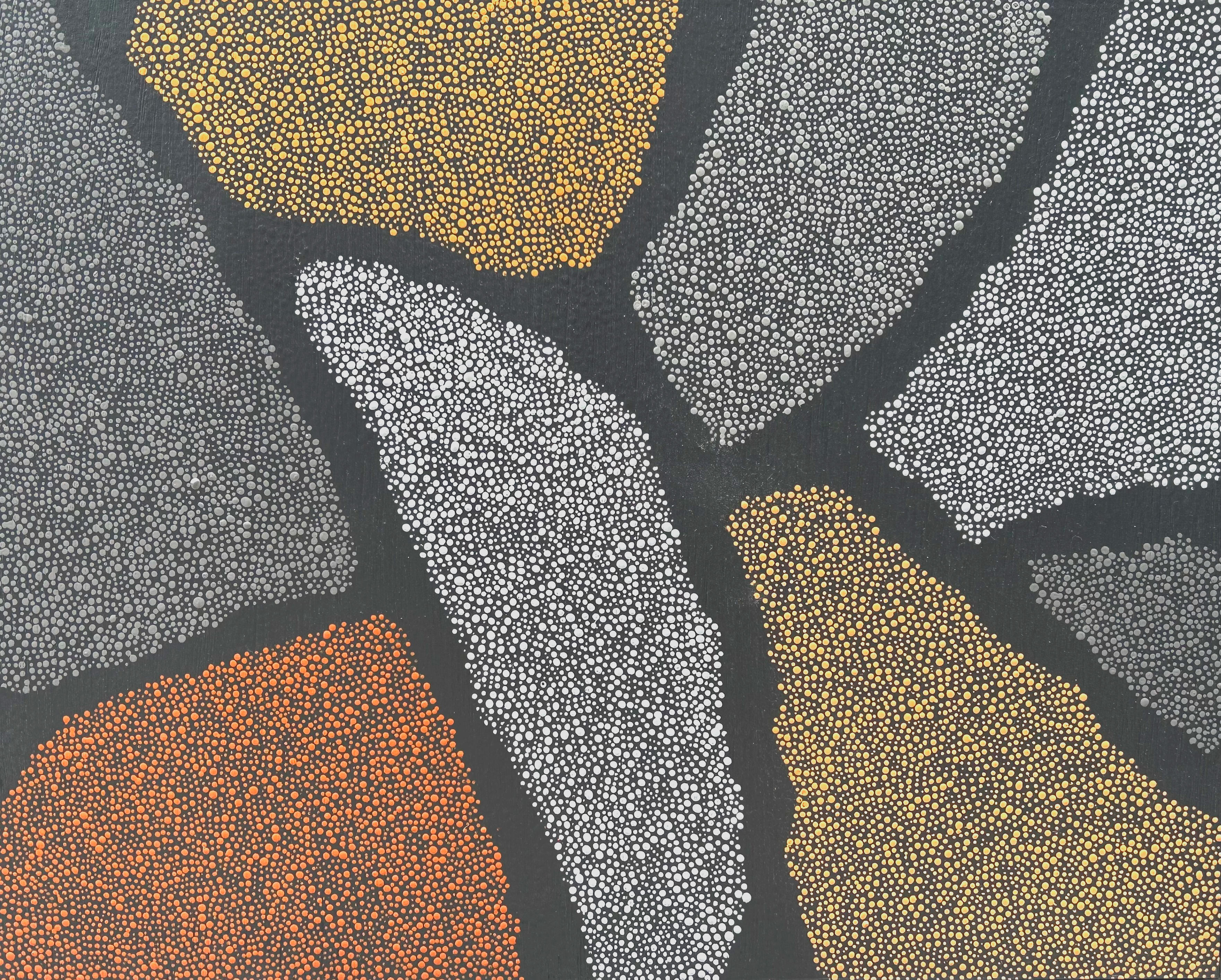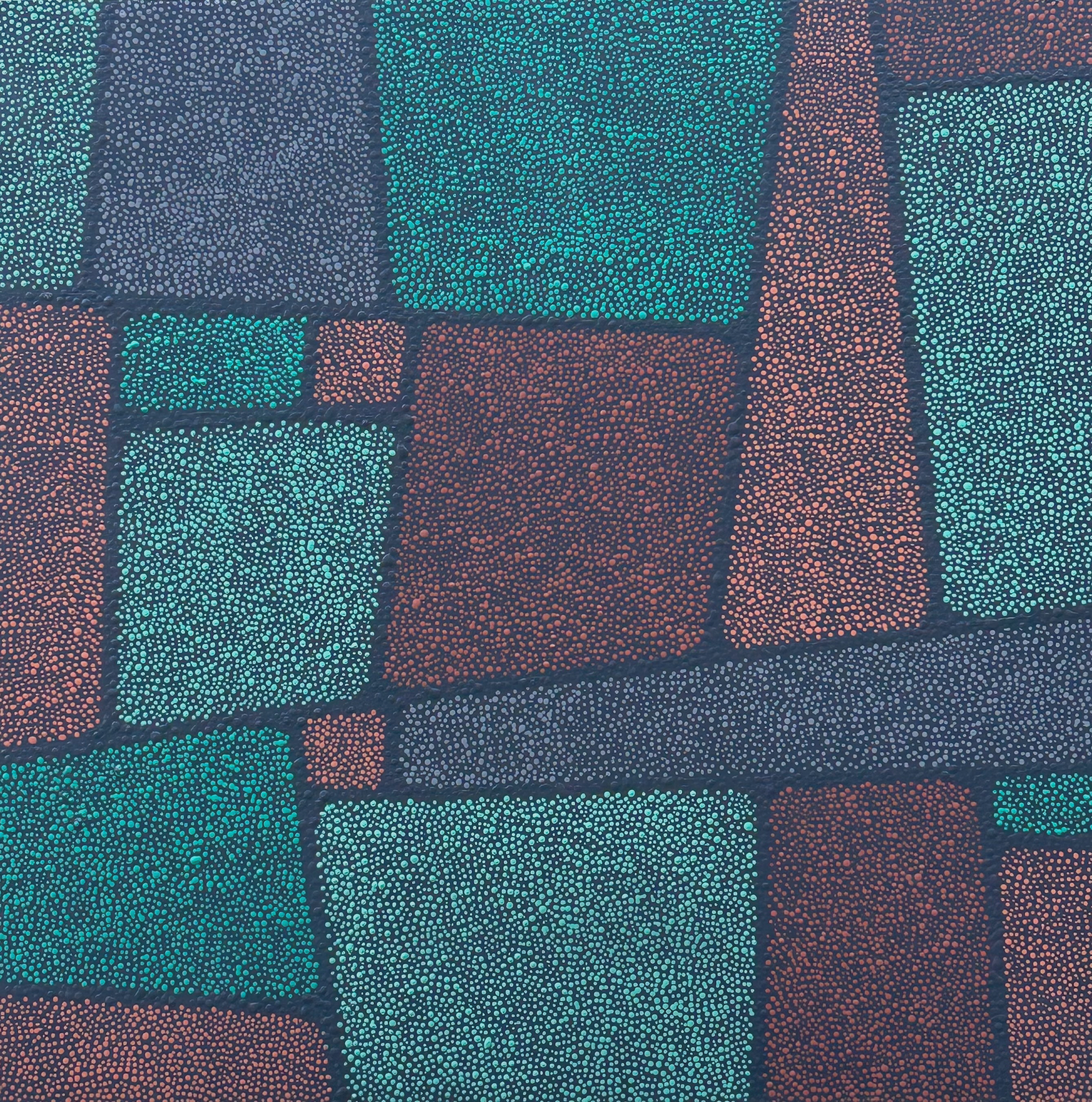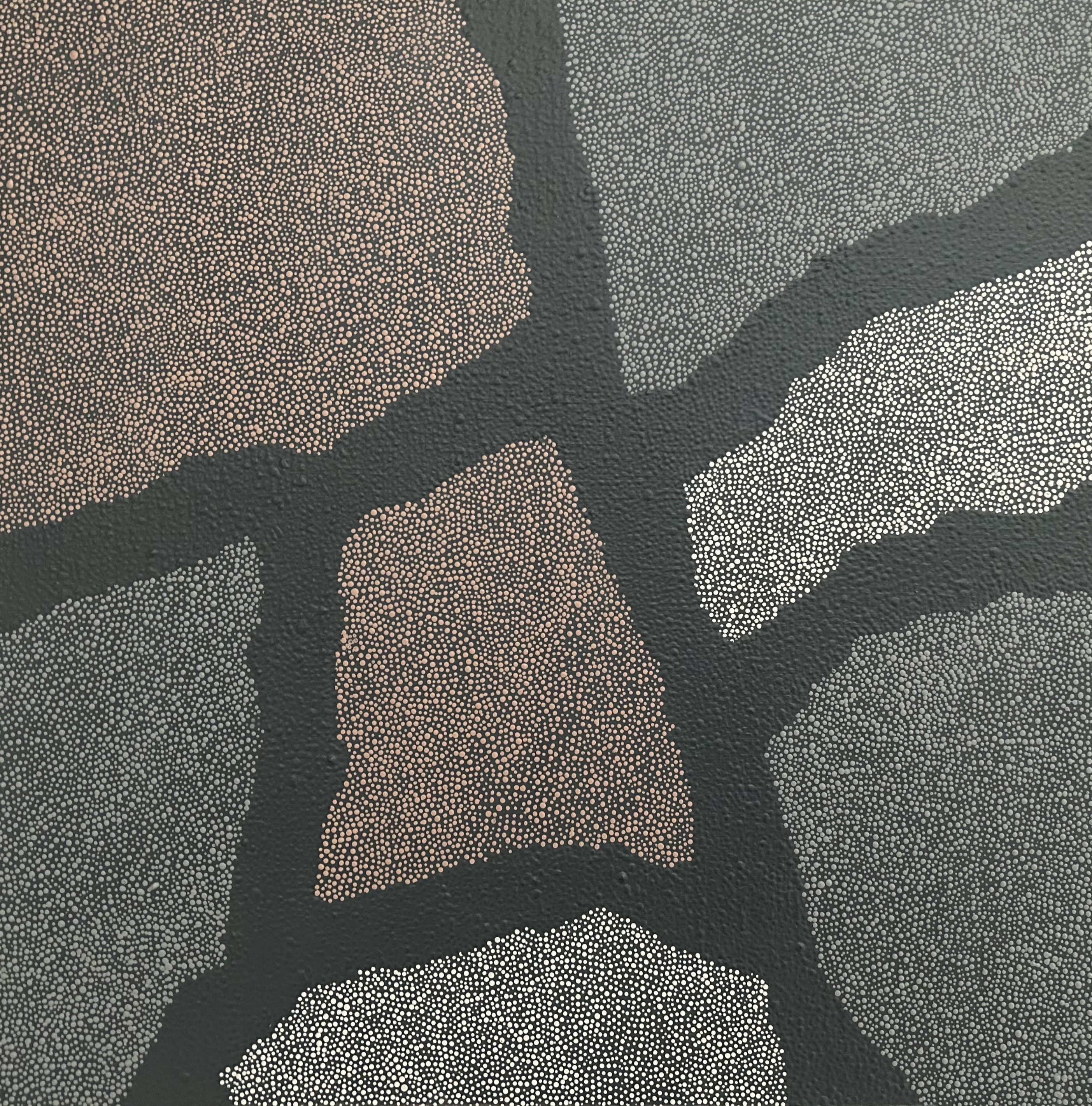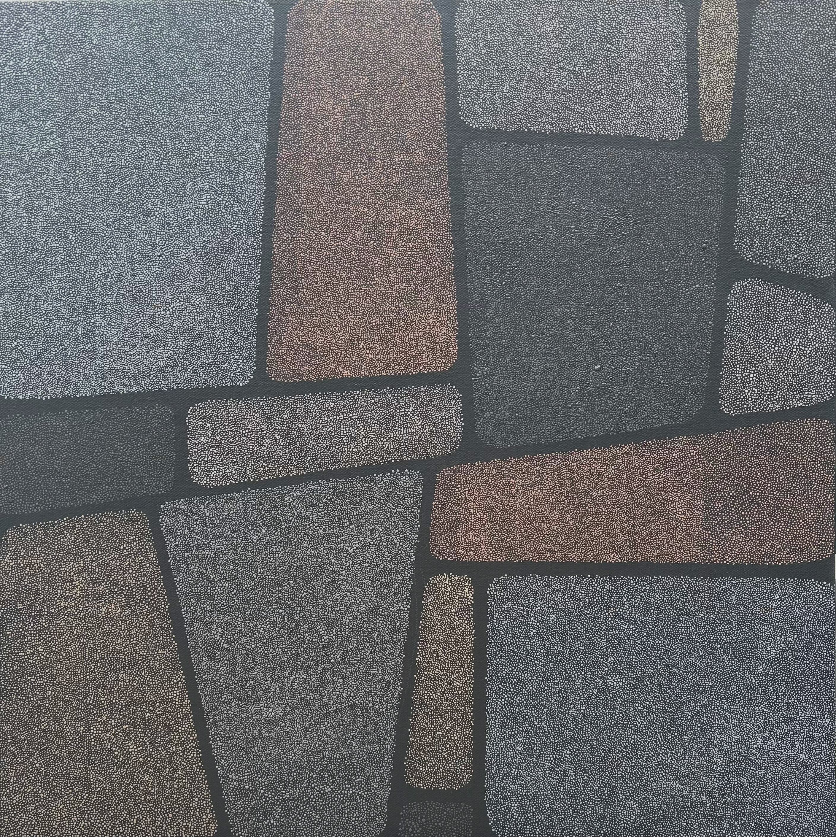 Charcoal Fawn Flagstones, acrylic on corrugated plastic, 14x14 inches, 2023