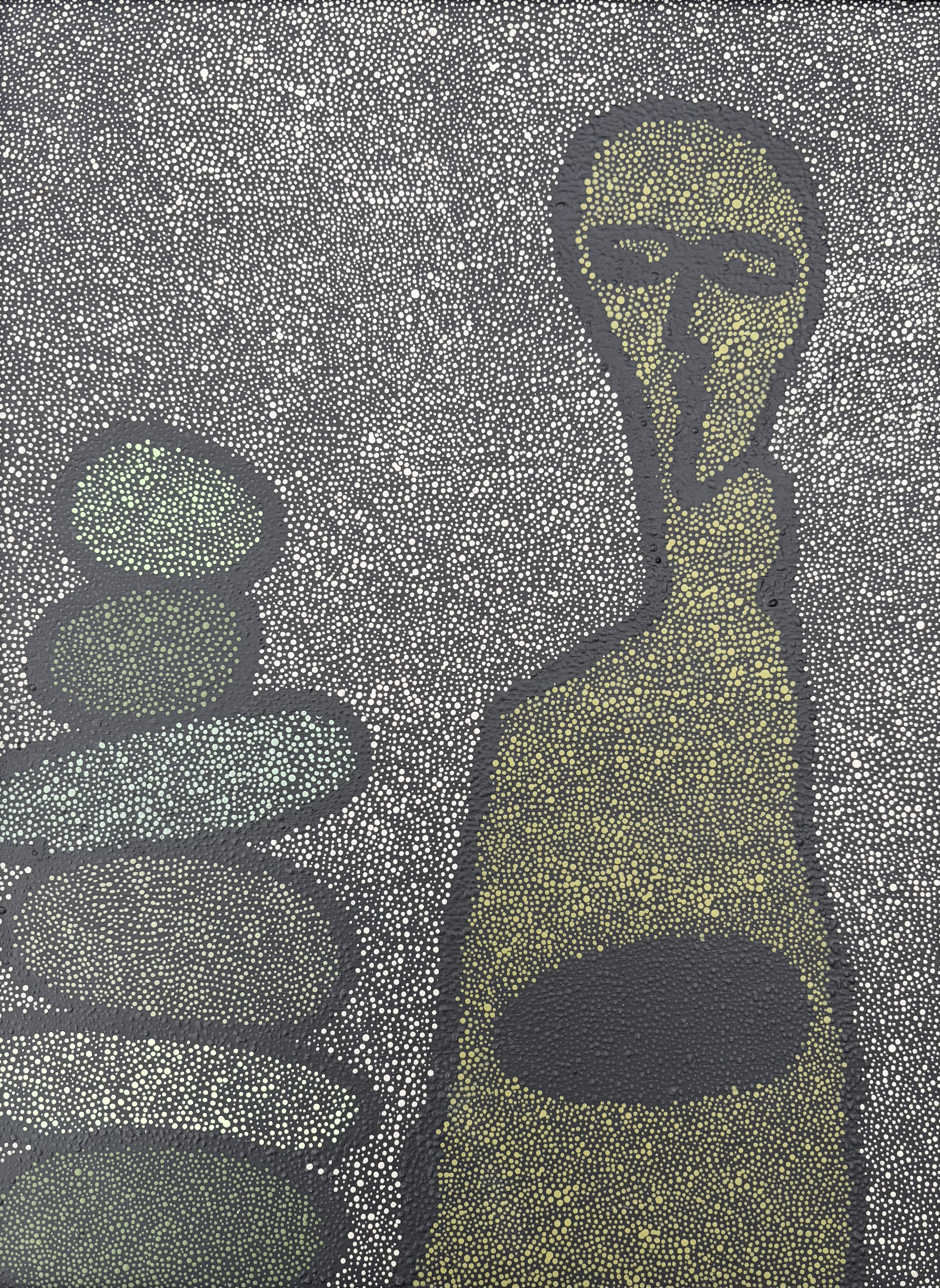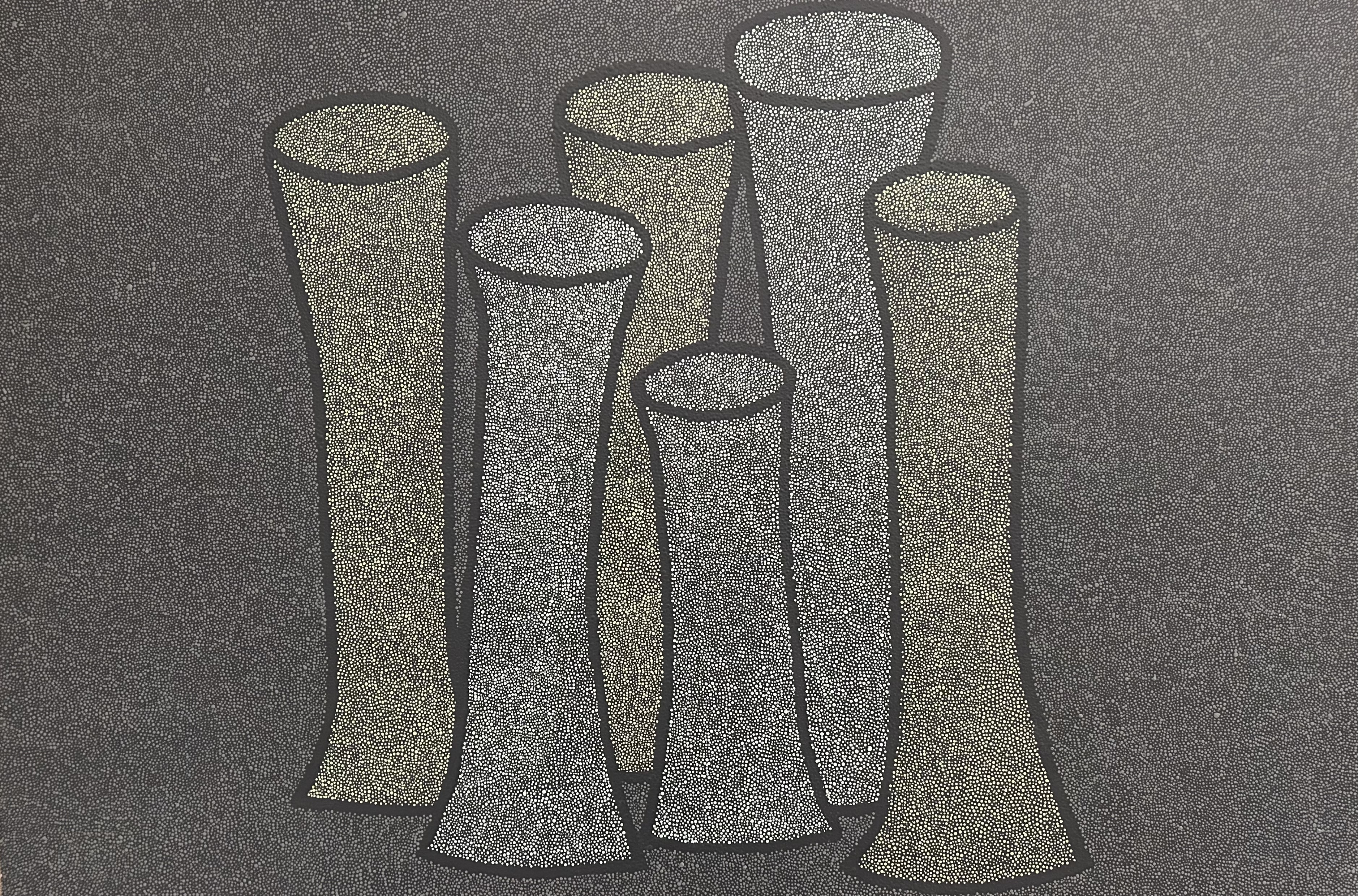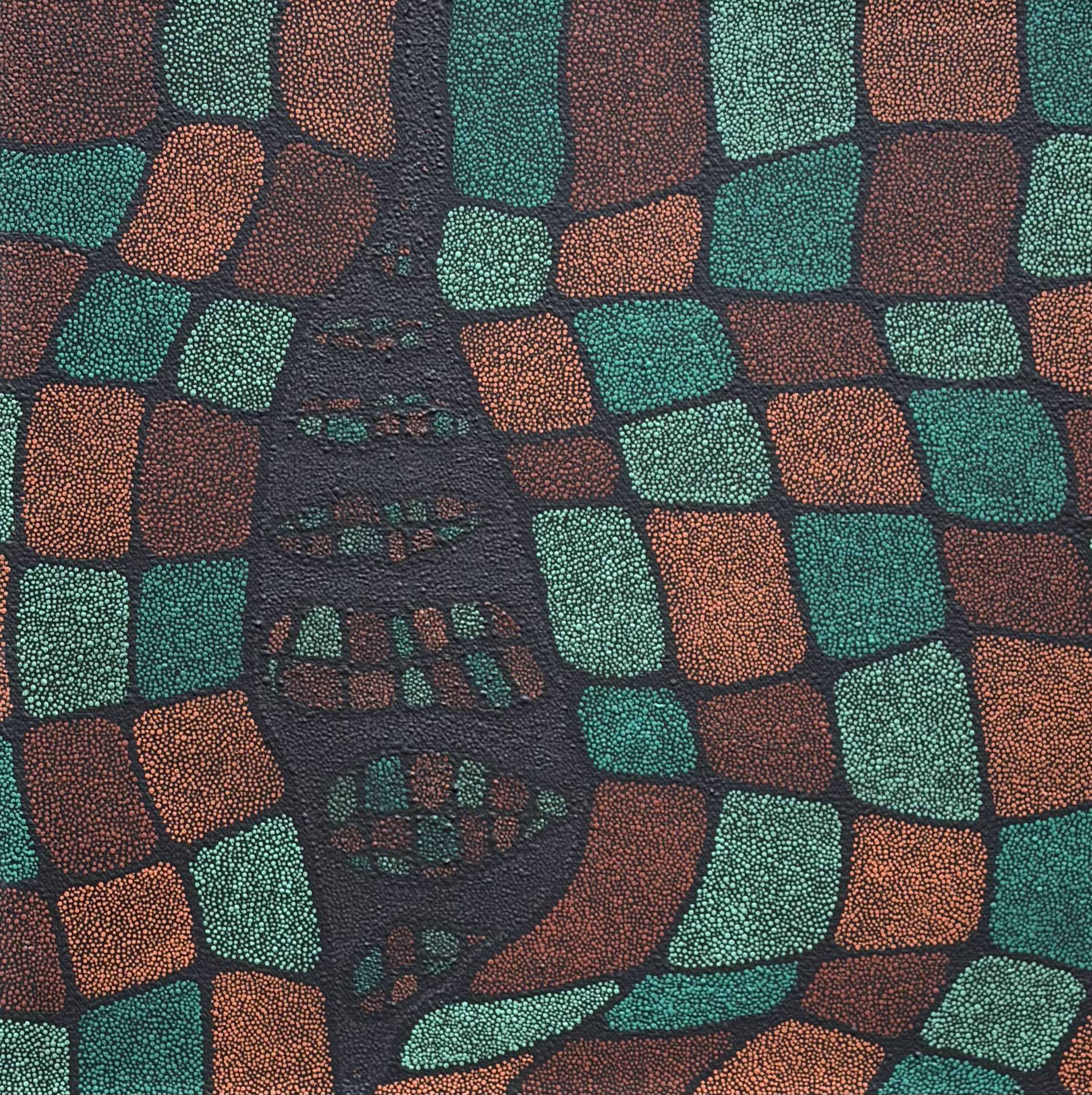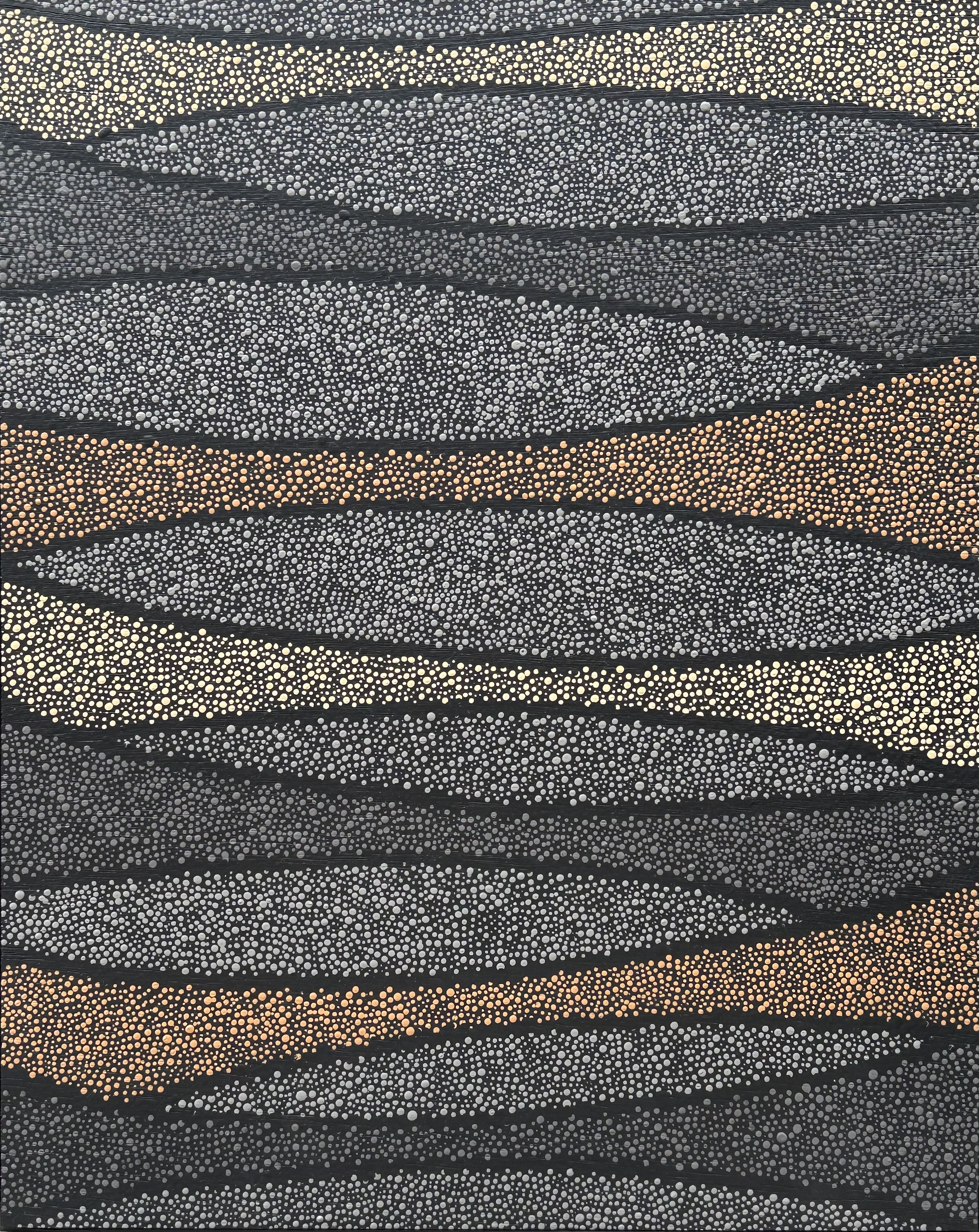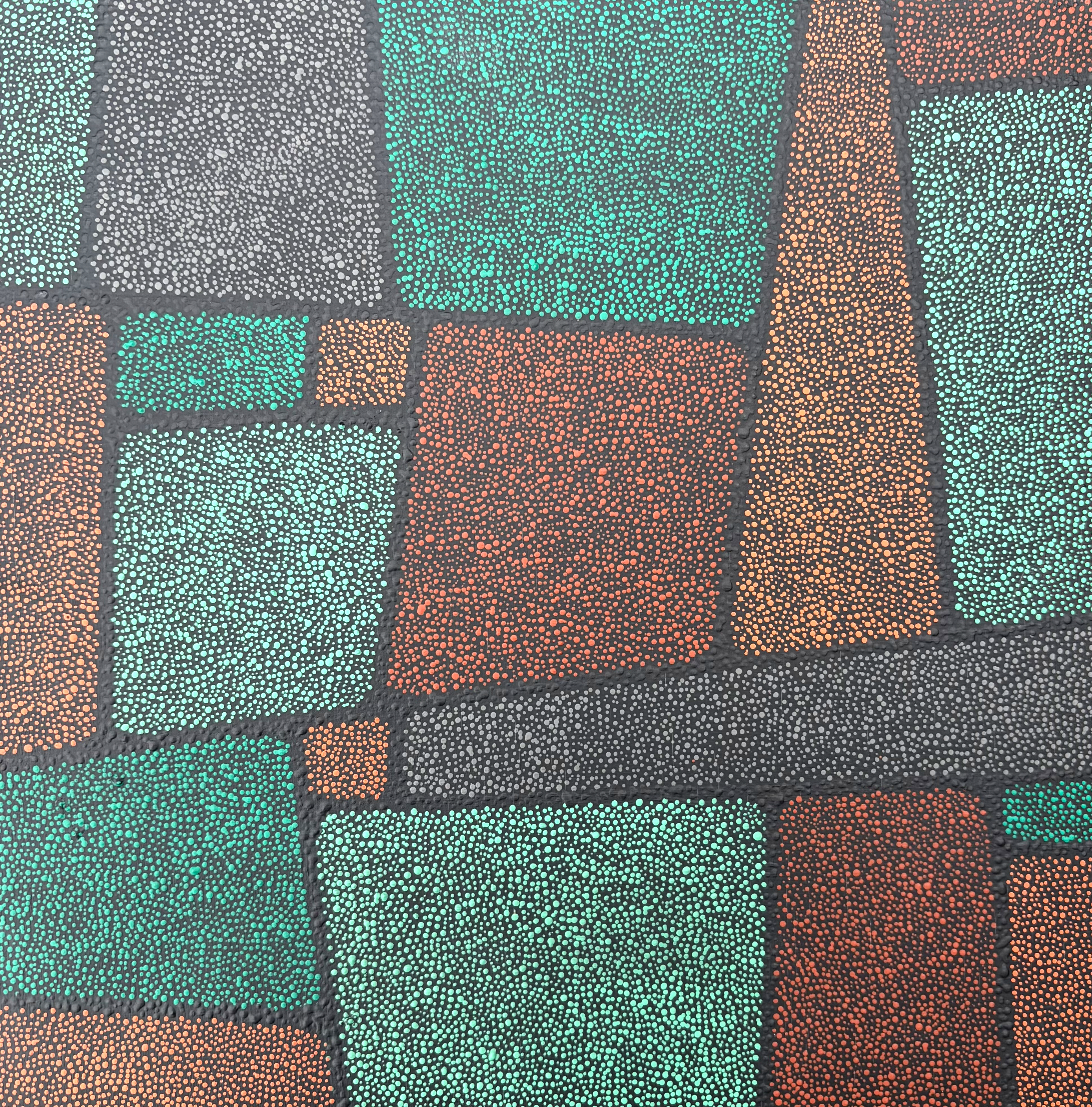 Charcoal Fawn Flagstones, acrylic on corrugated plastic, 14x14 inches, 2023