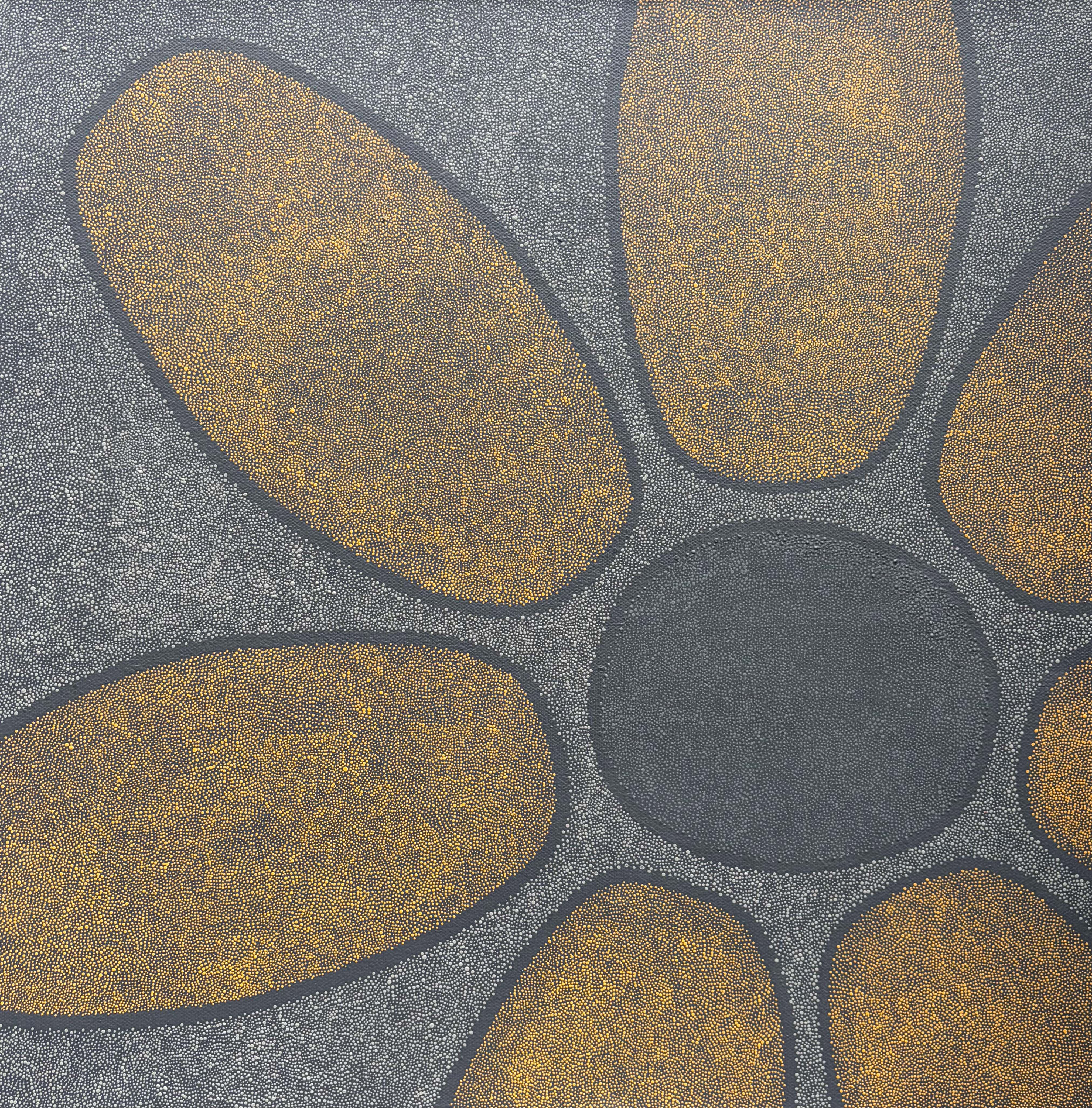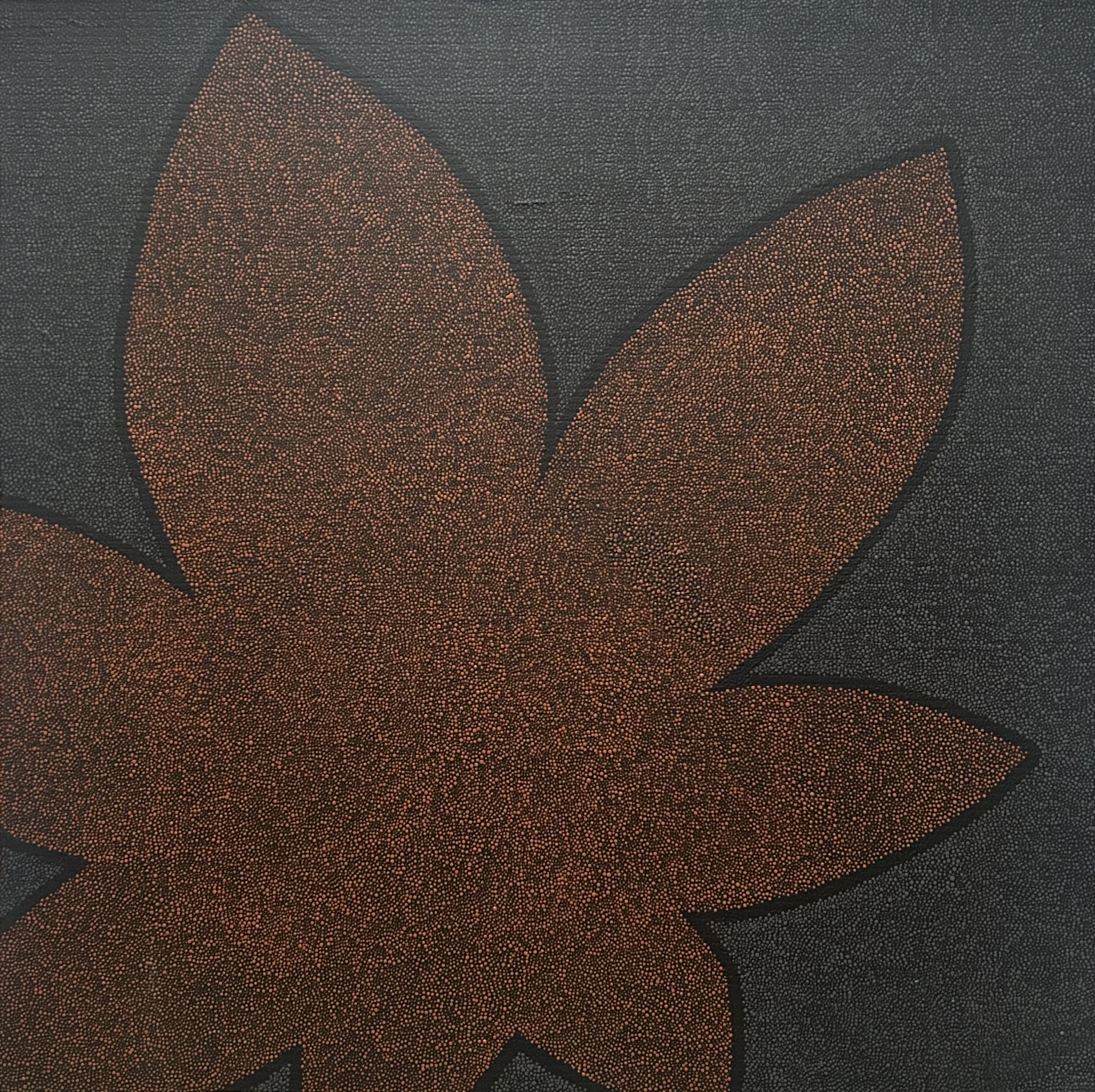Greygold Flower, acrylic on canvas, 18x18 inches, 2024