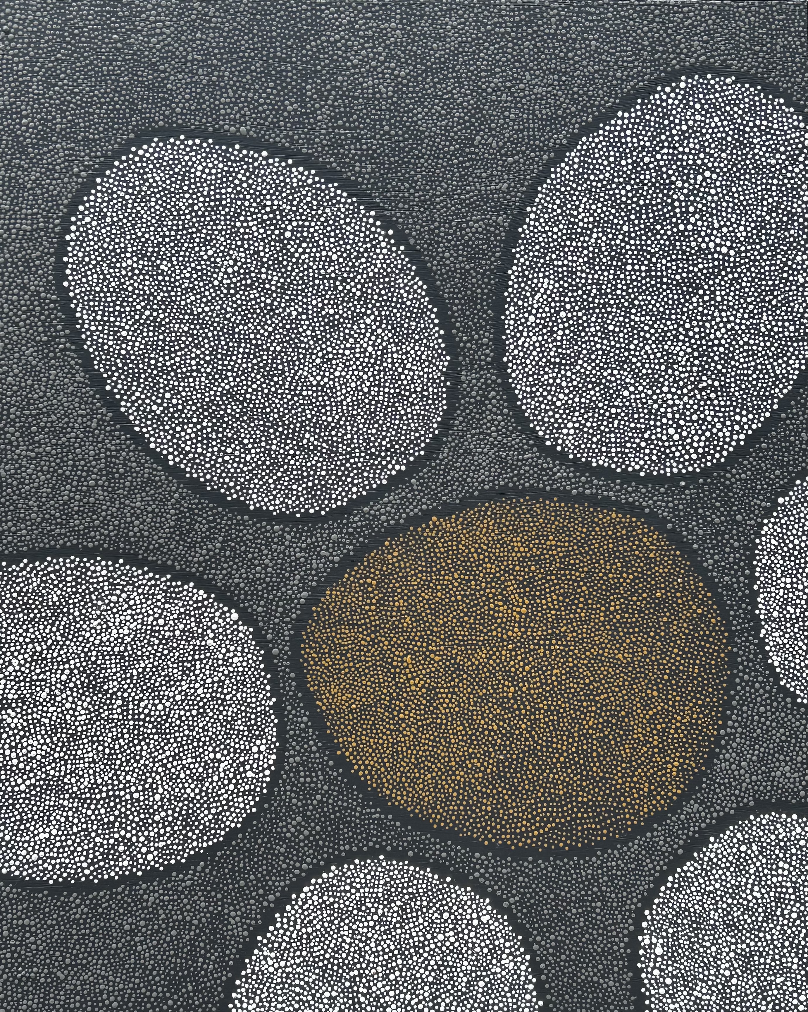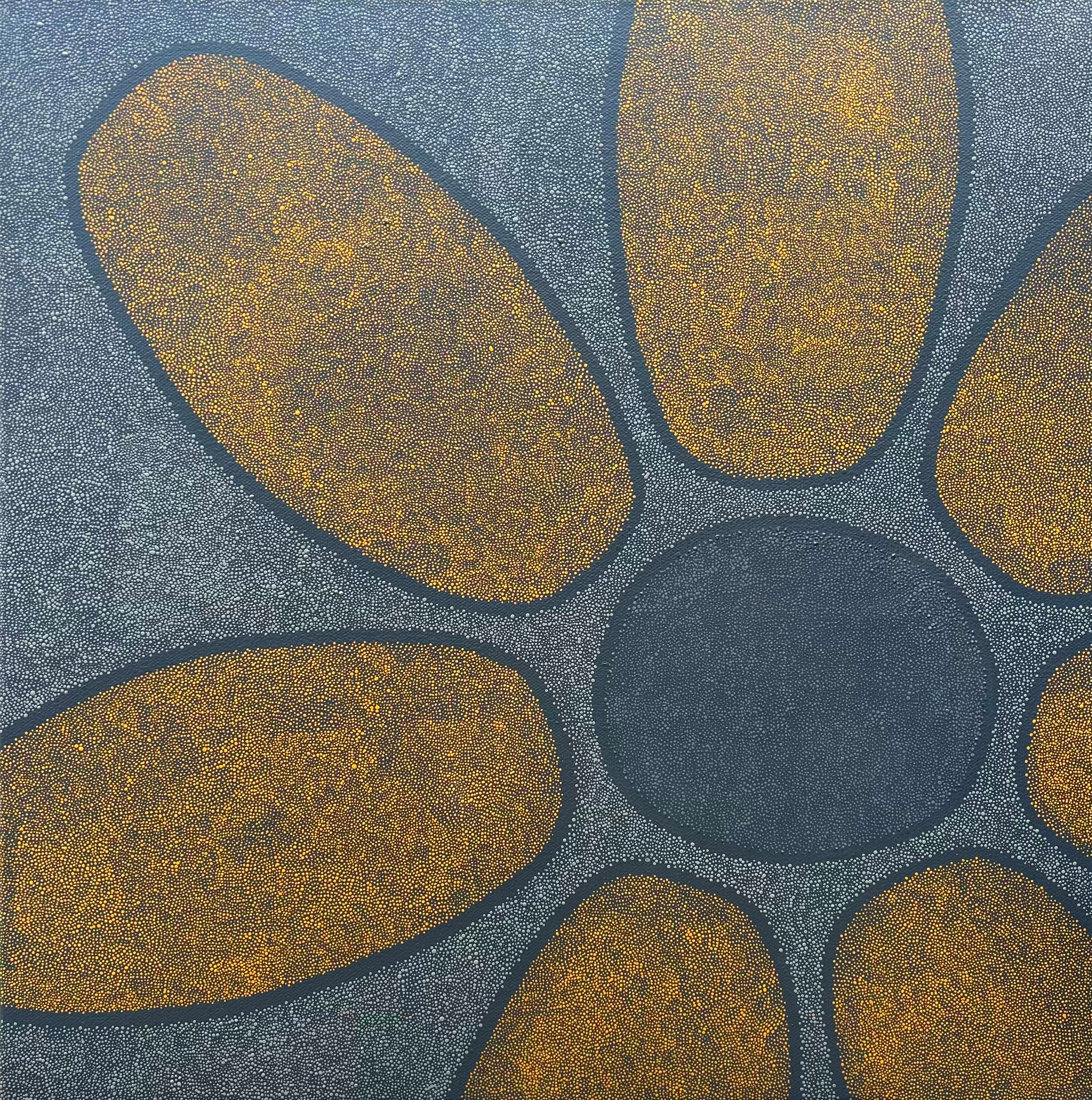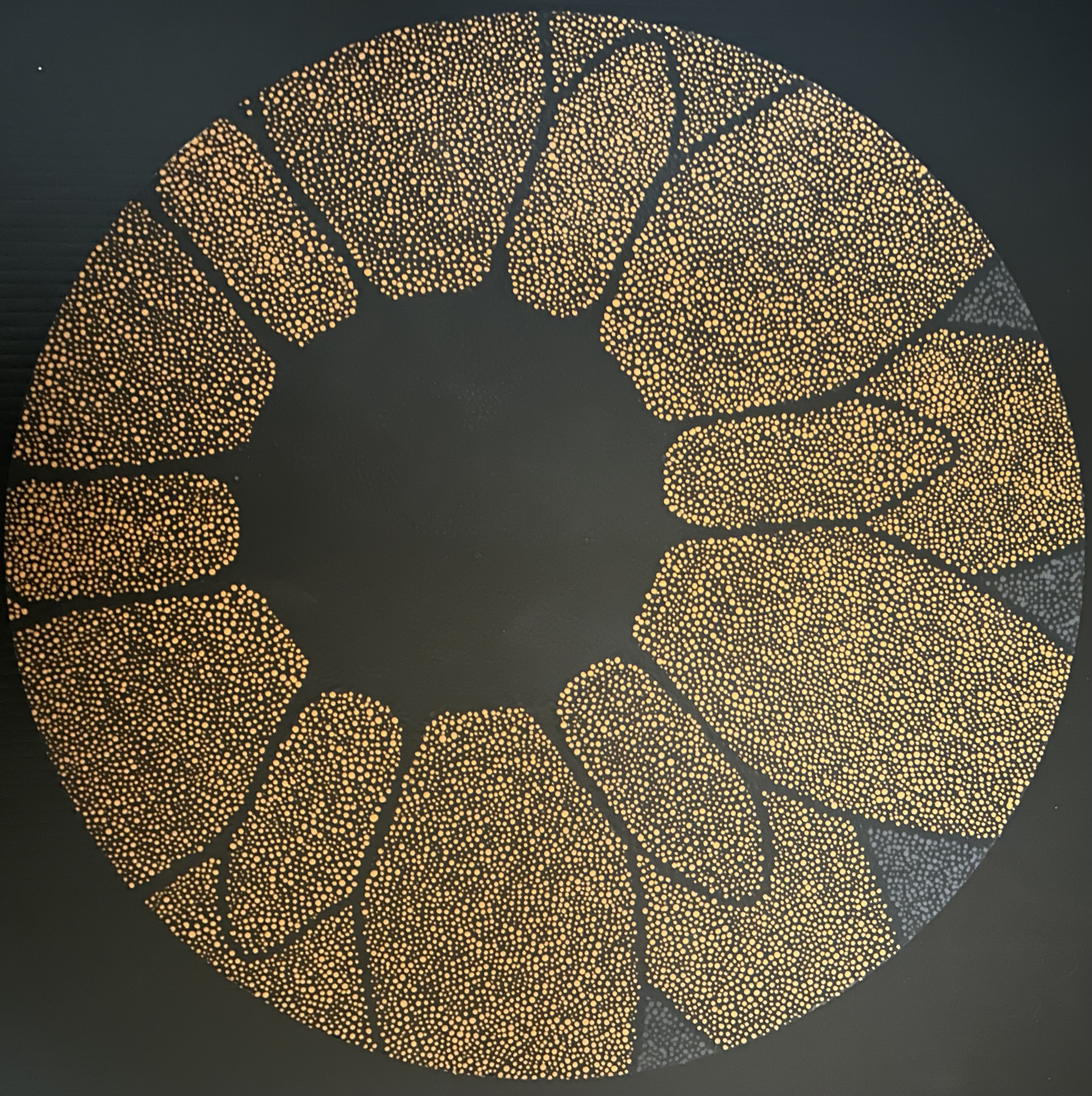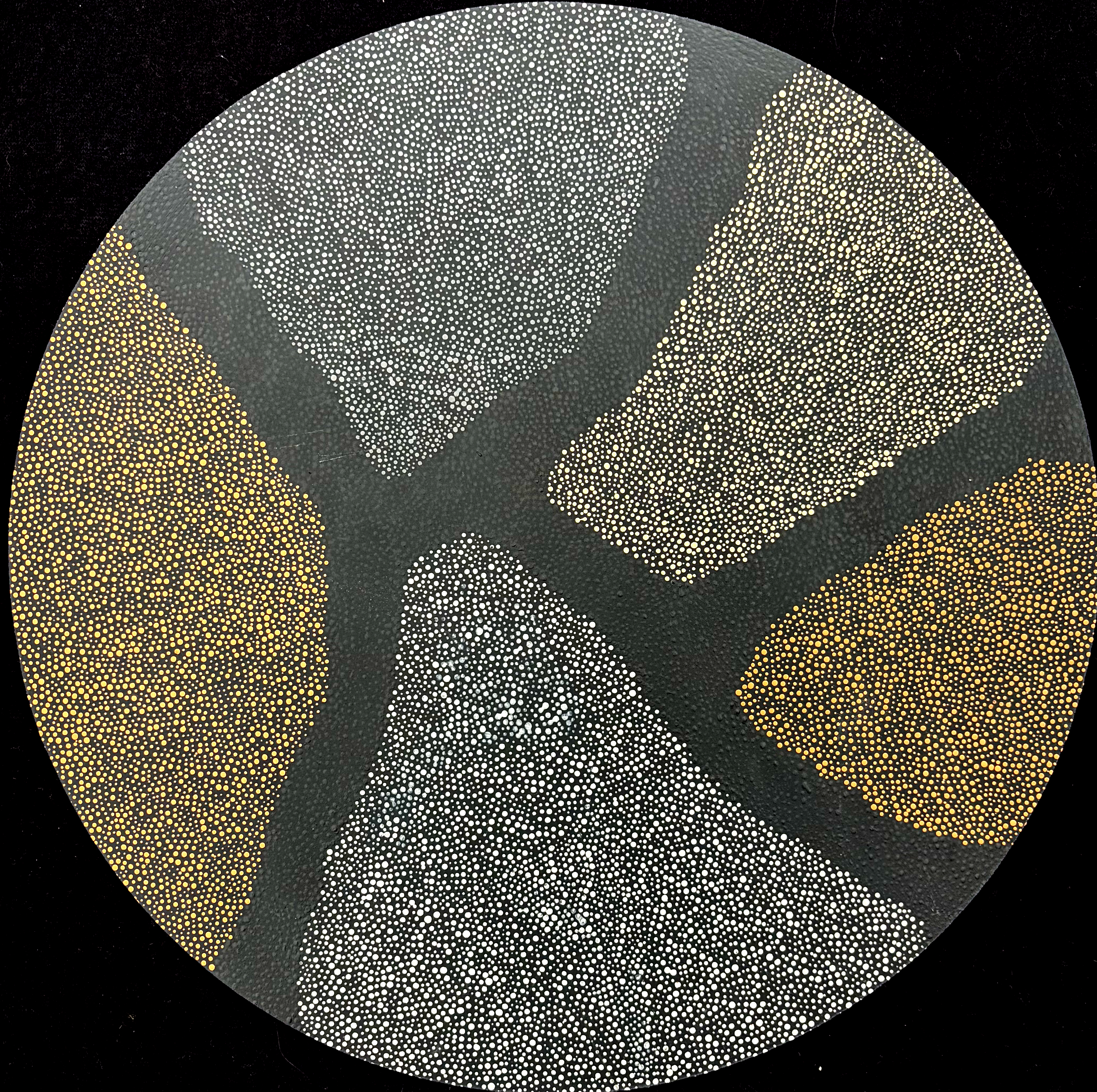 Honey Flagstones Round, acrylic on wood panel, 12 inches in diameter, 2023