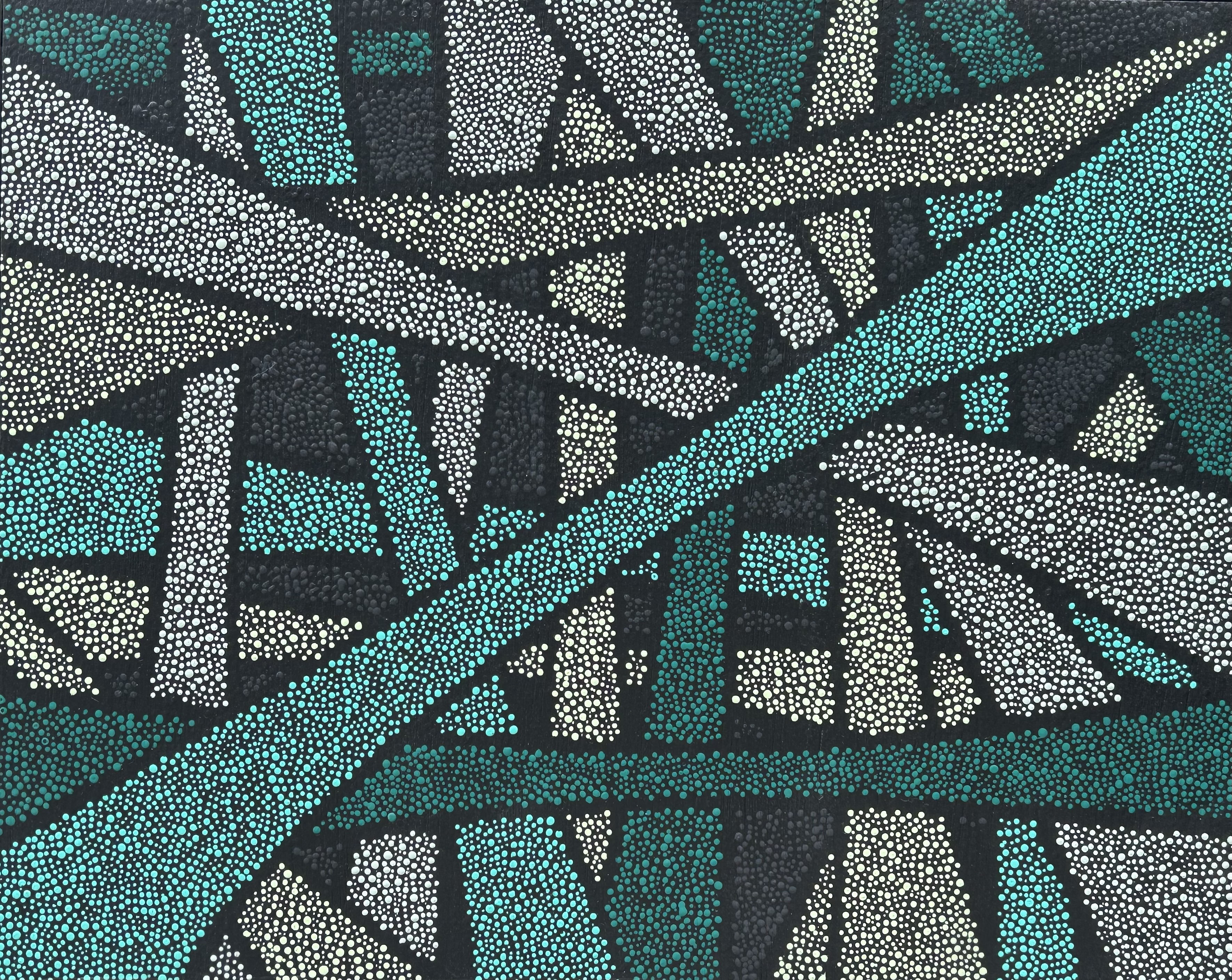 Aquatic Weave, acrylic on wood panel, 8x10 inches, 2024