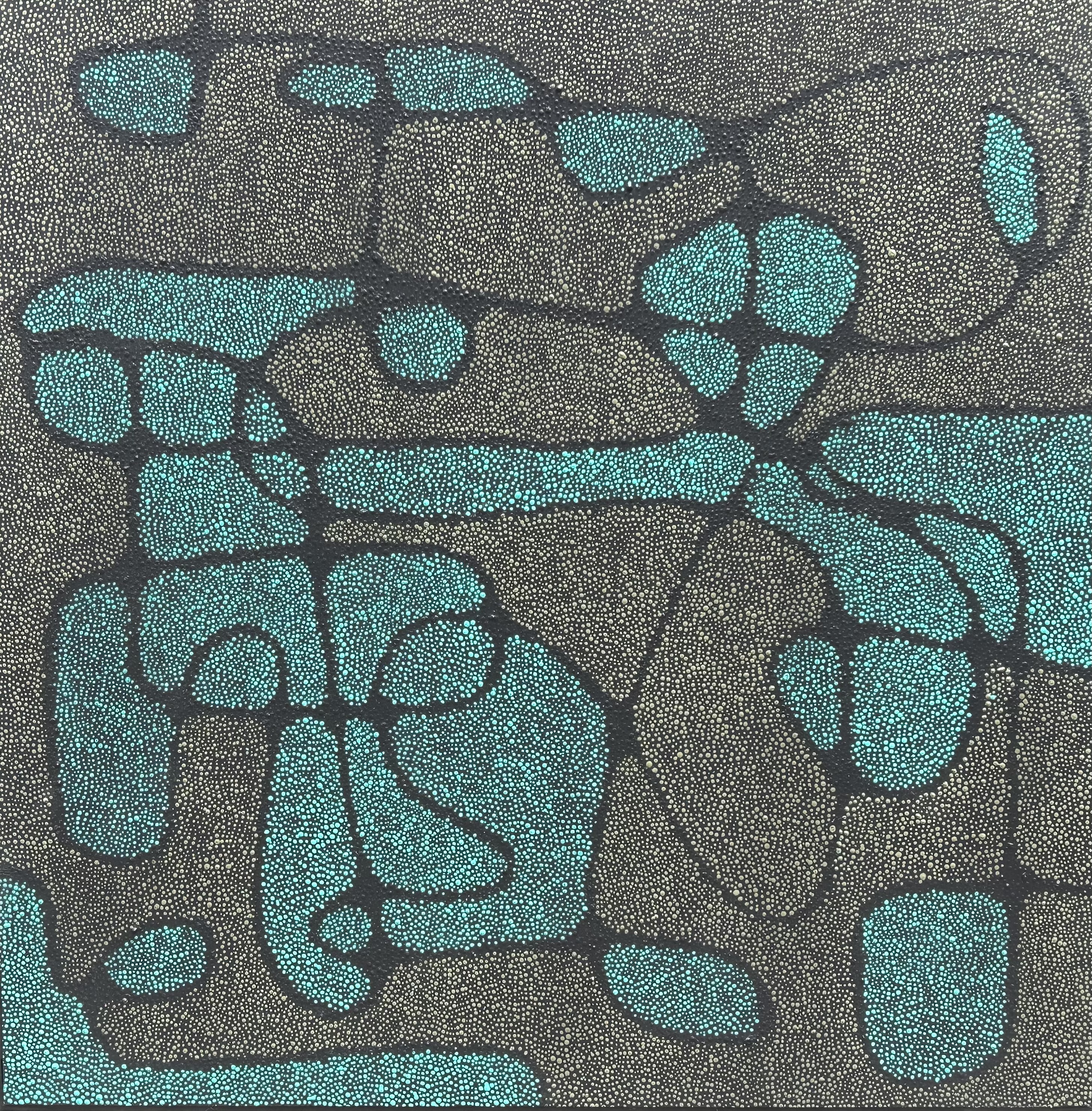 Neuro en Vert et Bleu, acrylic on wood panel, 12x12 inches, 2025