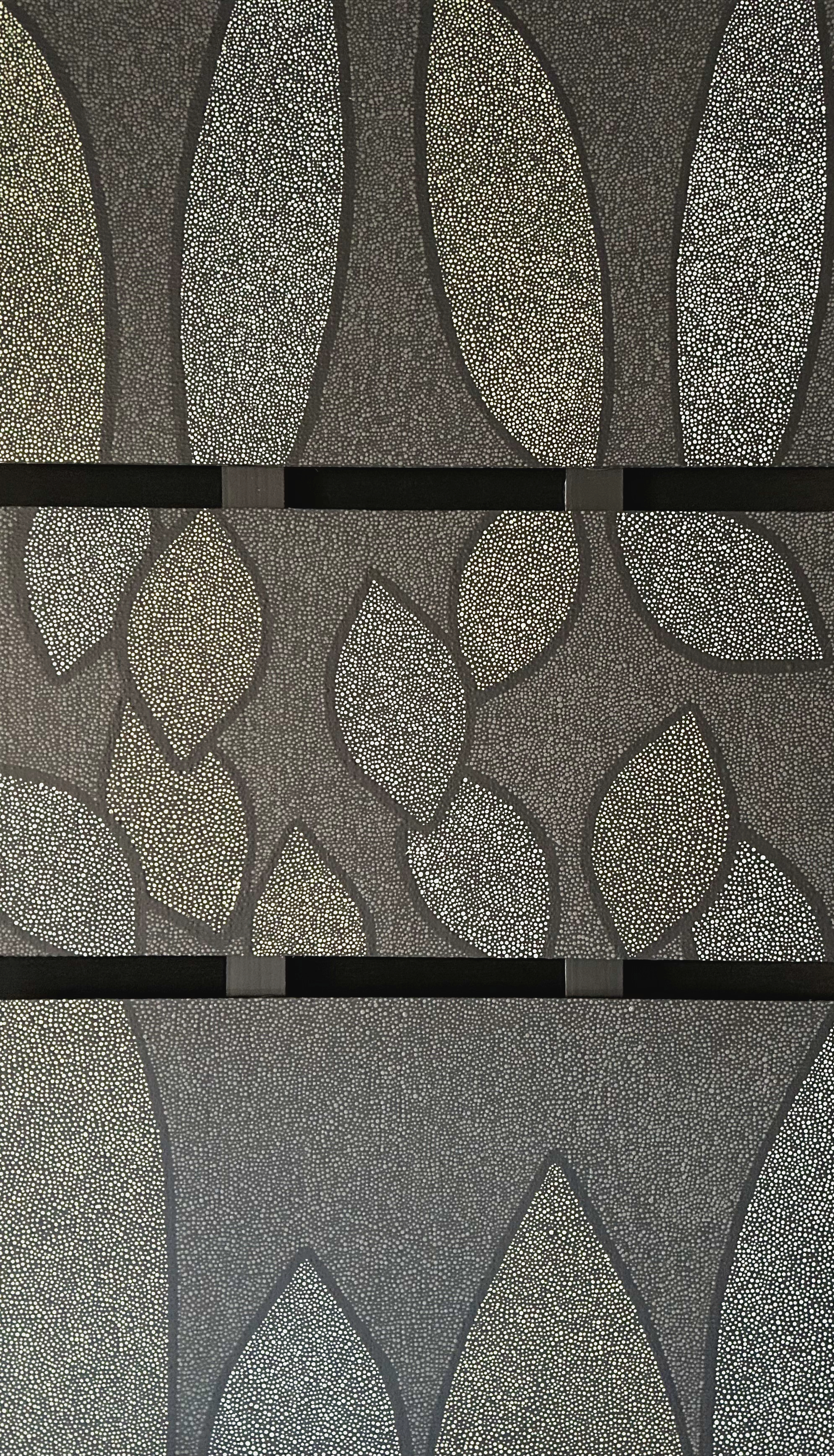Wasabi Leaf Triptych, acrylic on corrugated plastic, 26x15 inches, 2023