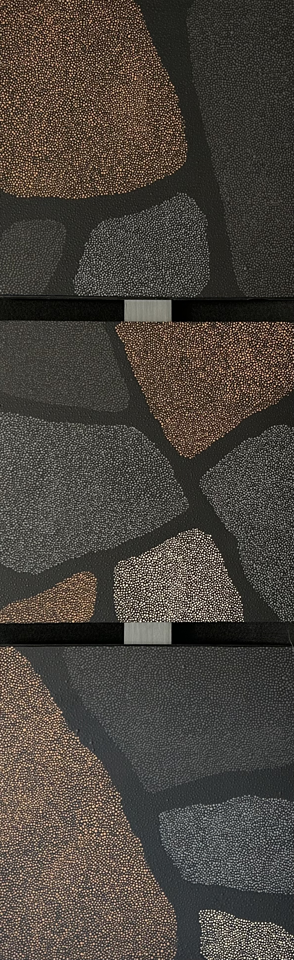 Honey Flagstones Triptych, acrylic on corrugated plastic, 32x10 inches, 2023