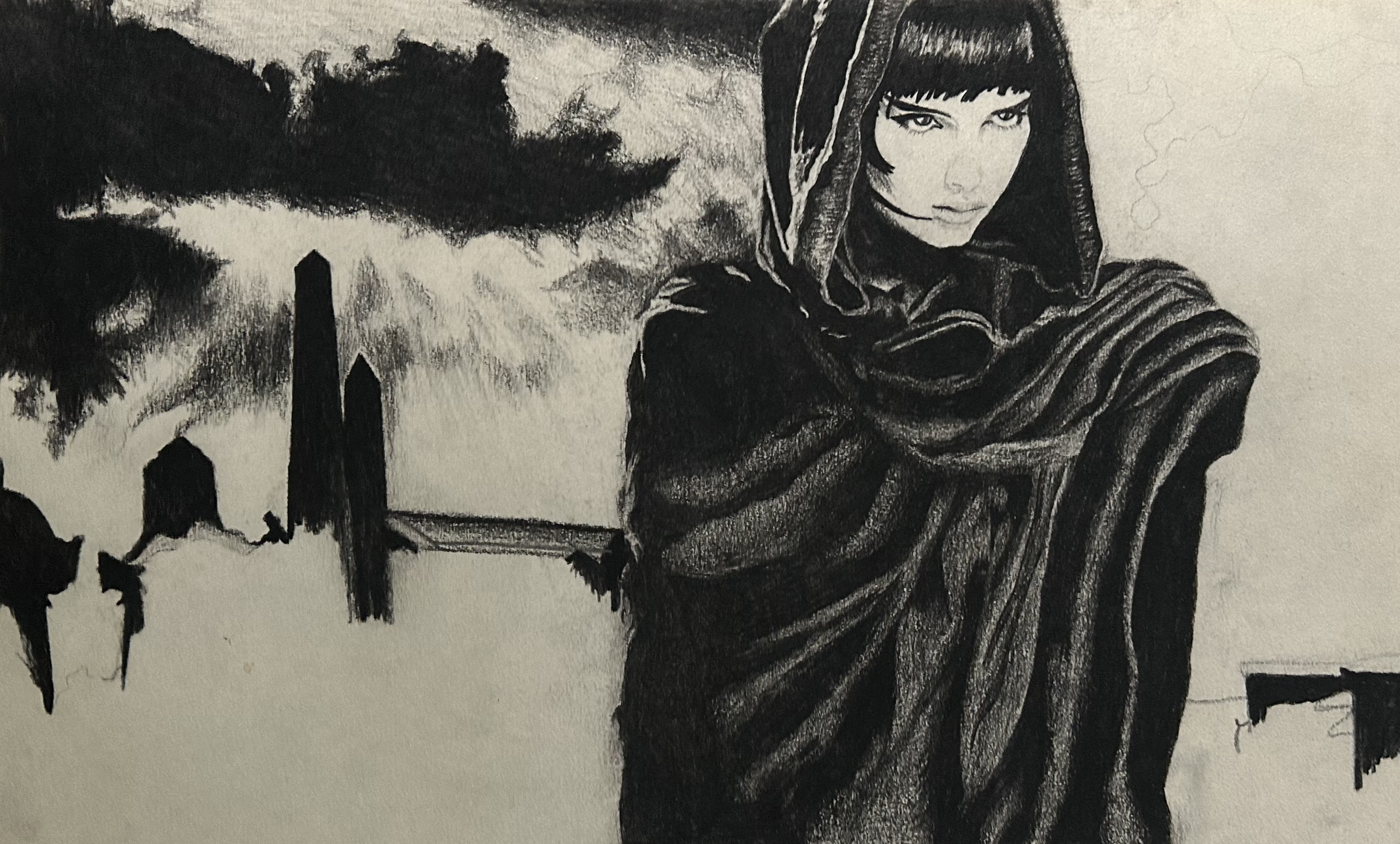 Phantasmagoria (The Damned album cover, photograph by Bob Carlos Clarke), charcoal on paper, 1994